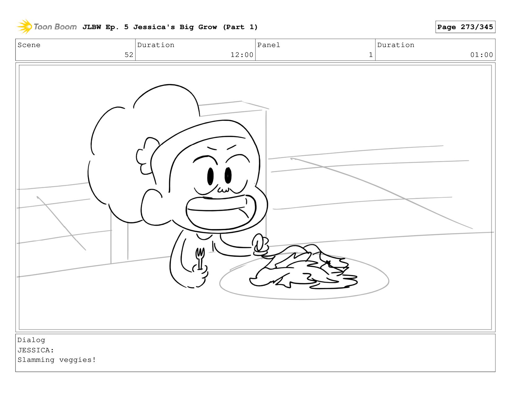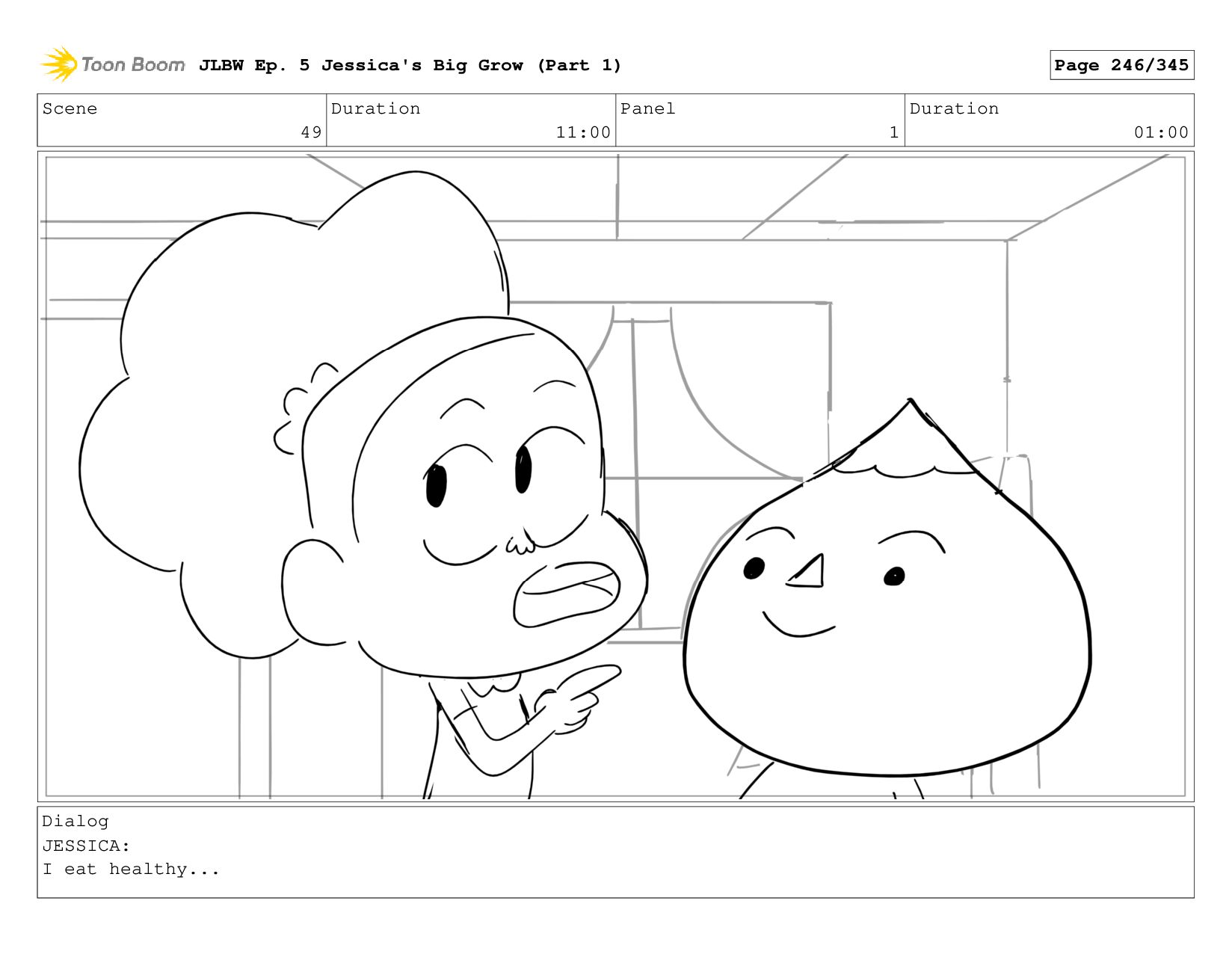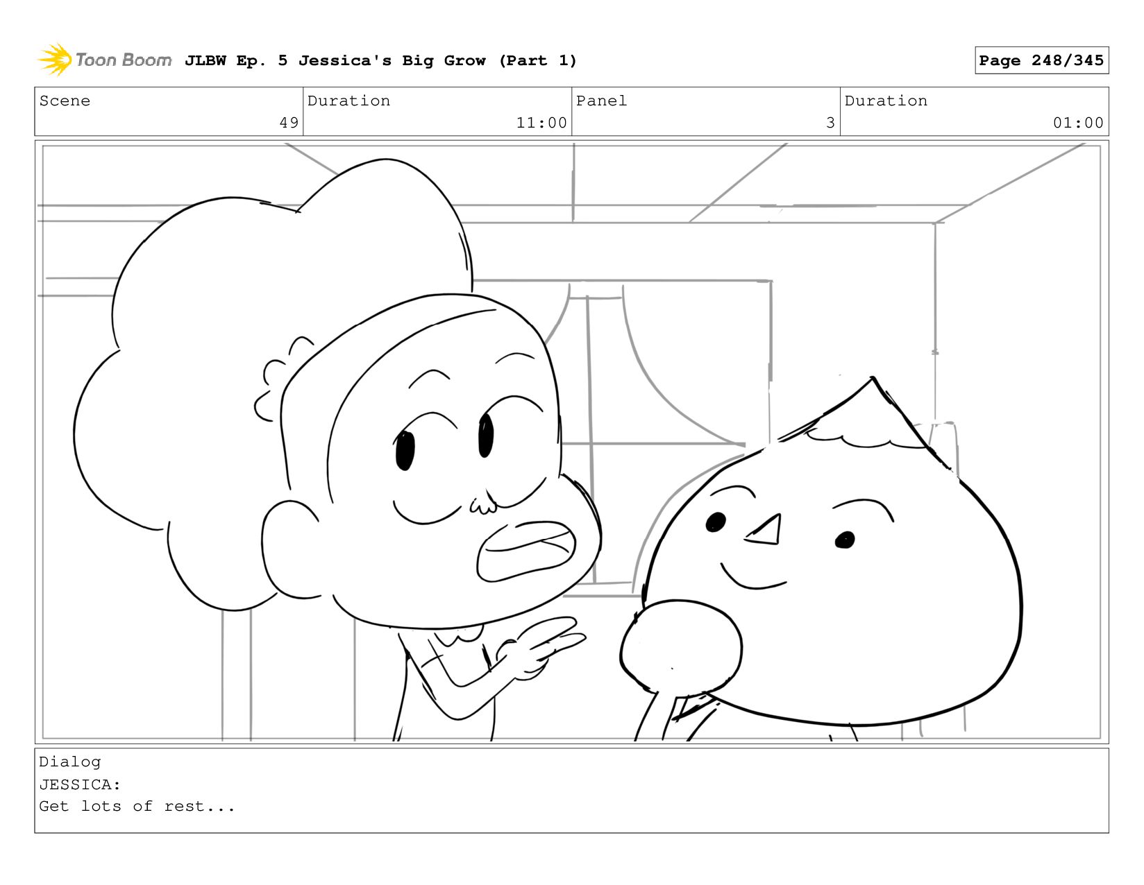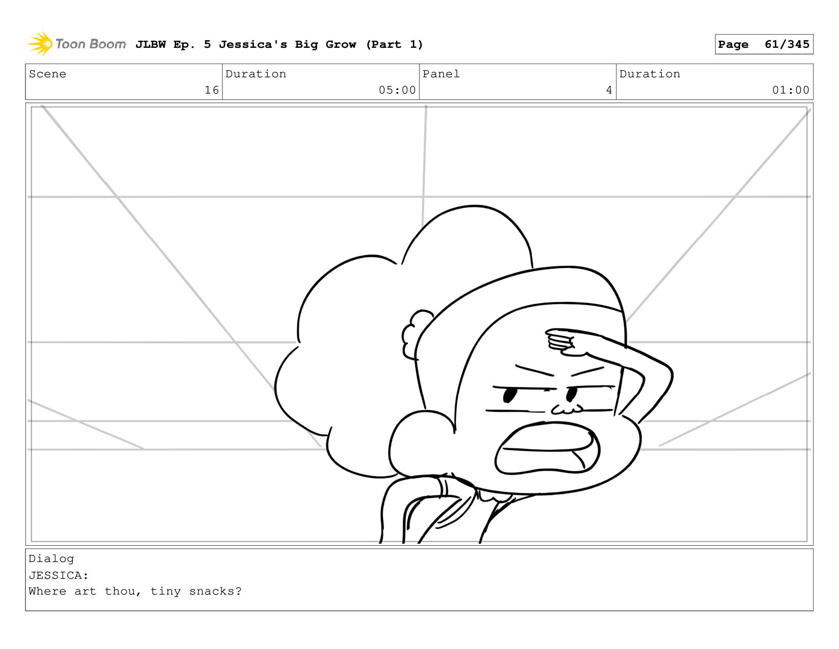 Scene 62 Duration 08:00 Panel 4 Duration 01:00 Dialog JESSICA: