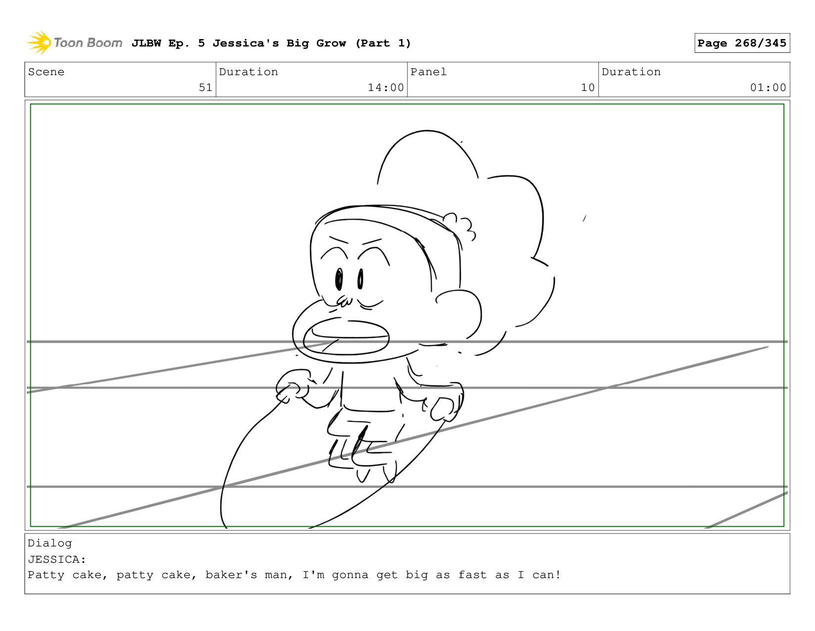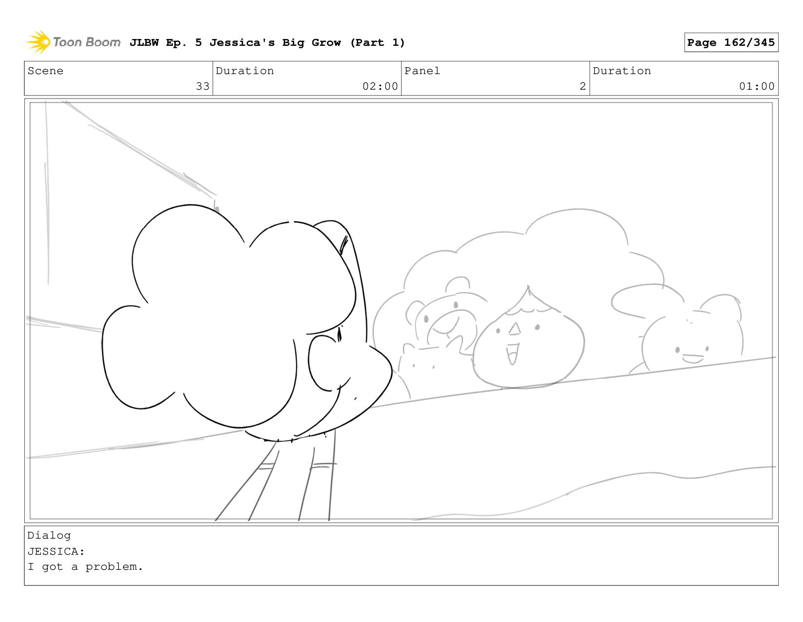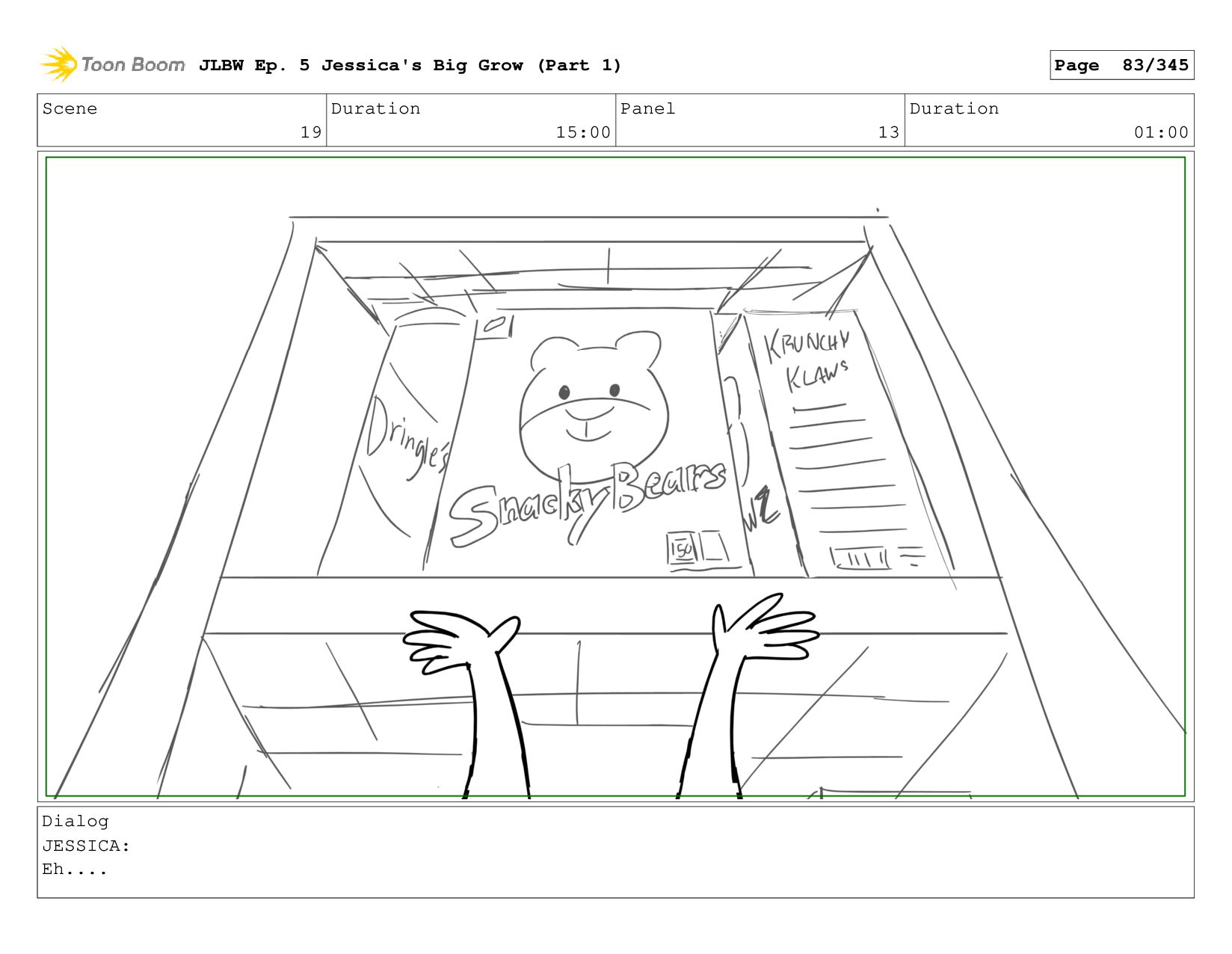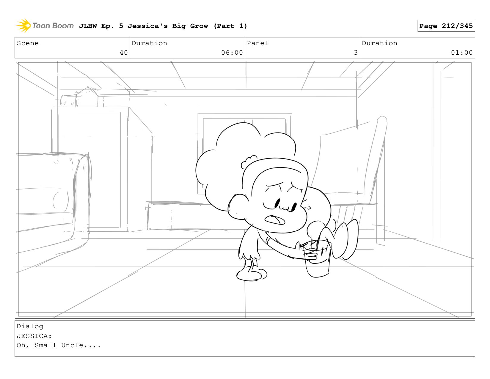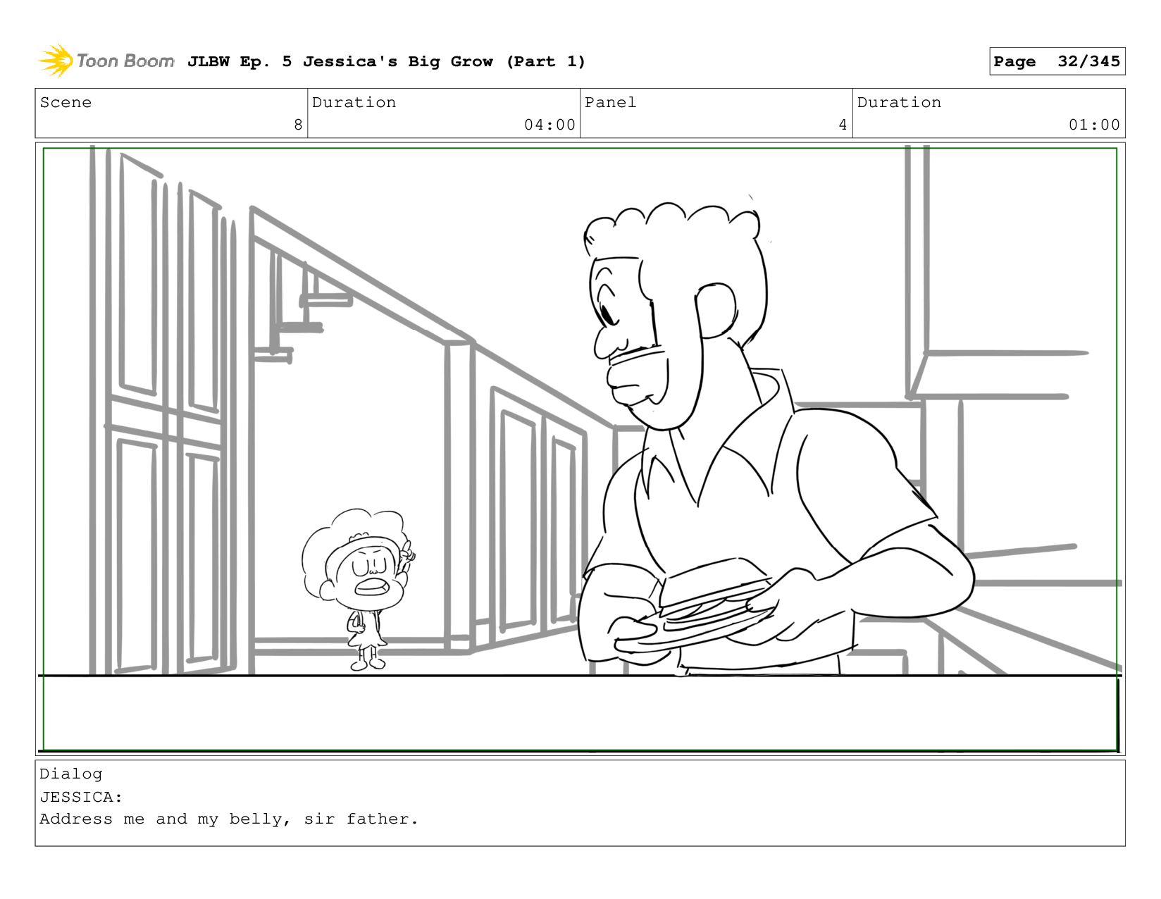 Scene 62 Duration 08:00 Panel 4 Duration 01:00 Dialog JESSICA: