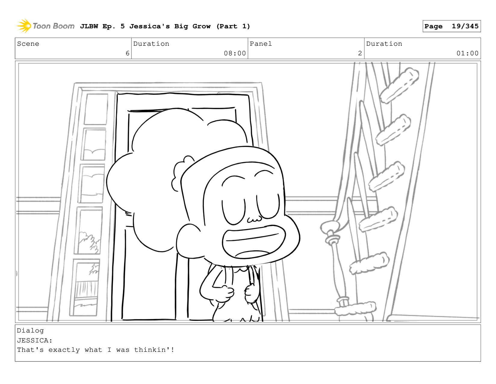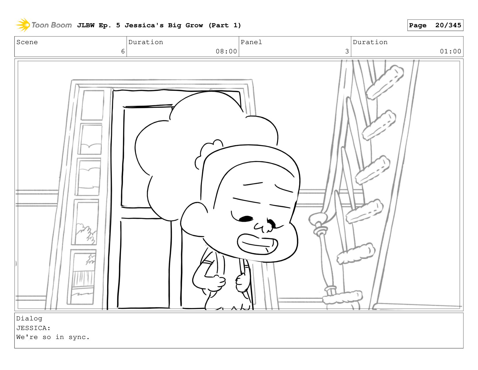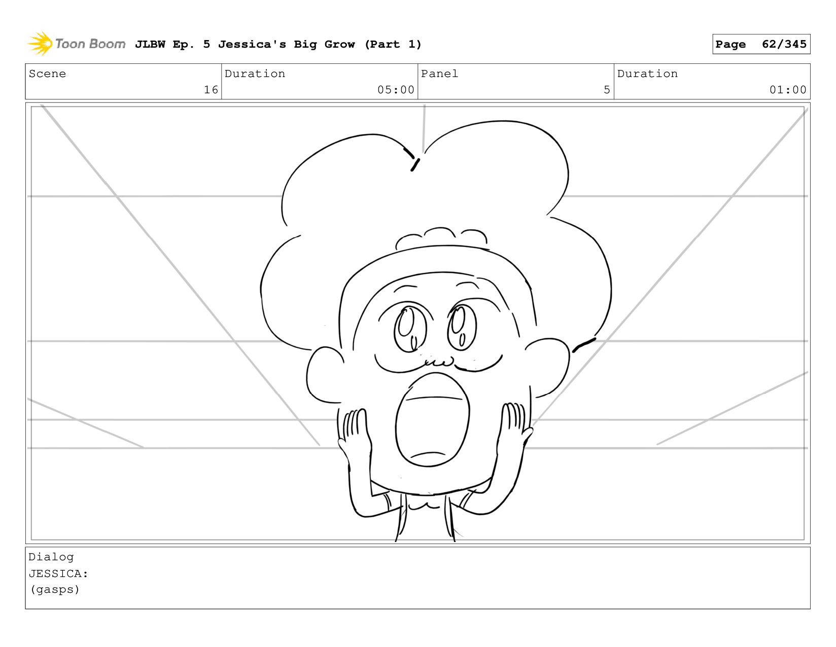 Scene 62 Duration 08:00 Panel 5 Duration 01:00 Dialog JESSICA: