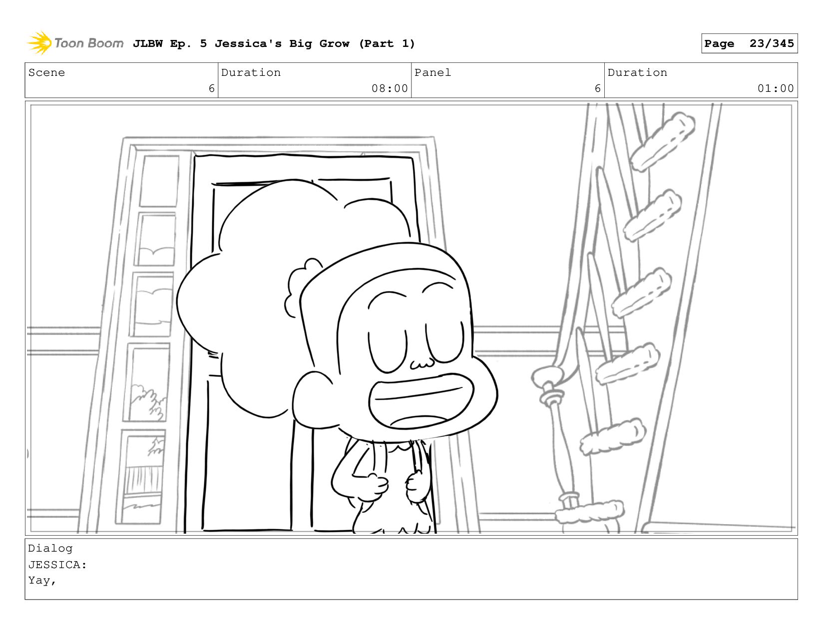 Scene 62 Duration 08:00 Panel 6 Duration 01:00 Dialog JESSICA: