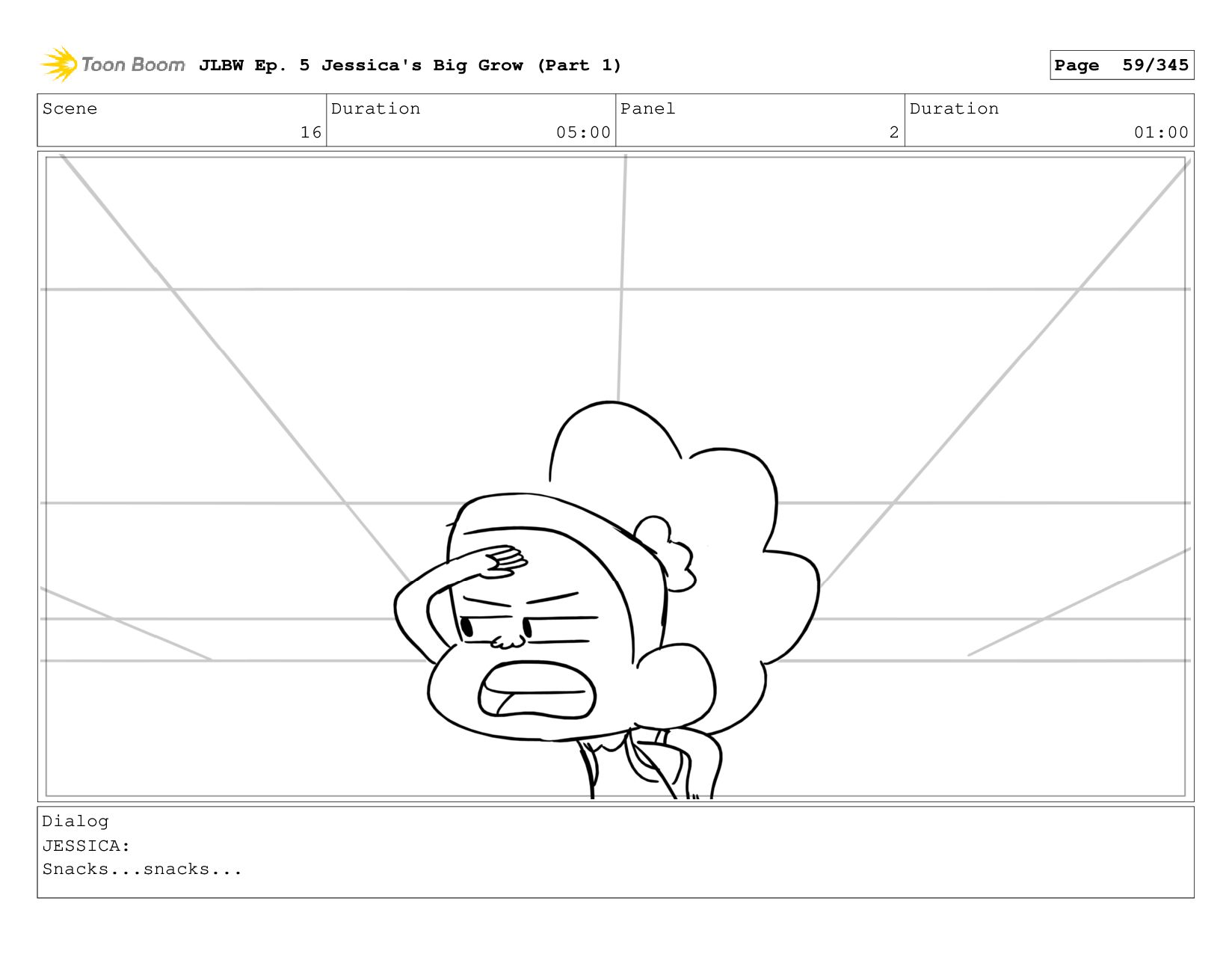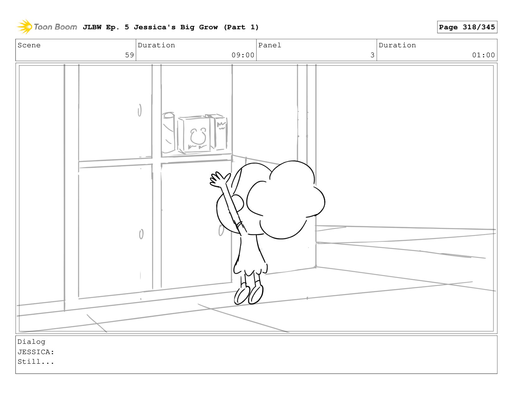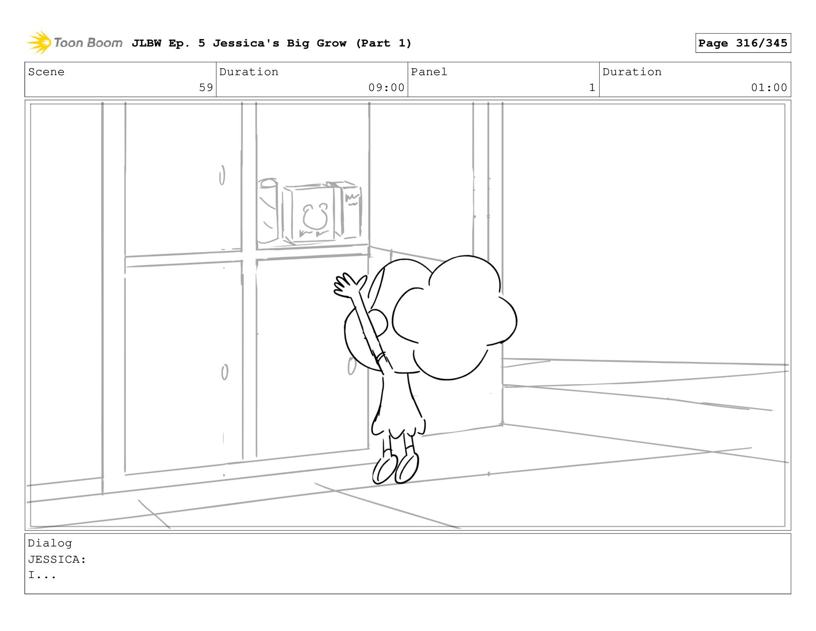 Scene 59 Duration 09:00 Panel 5 Duration 01:00 Dialog JESSICA: