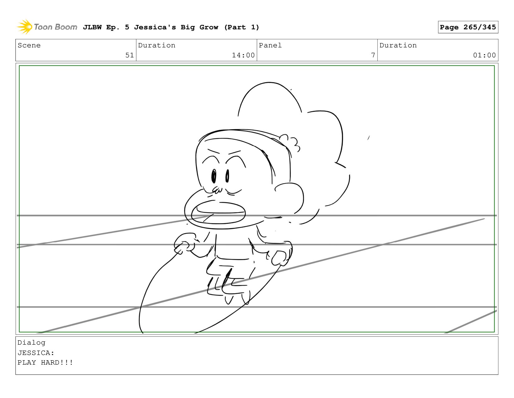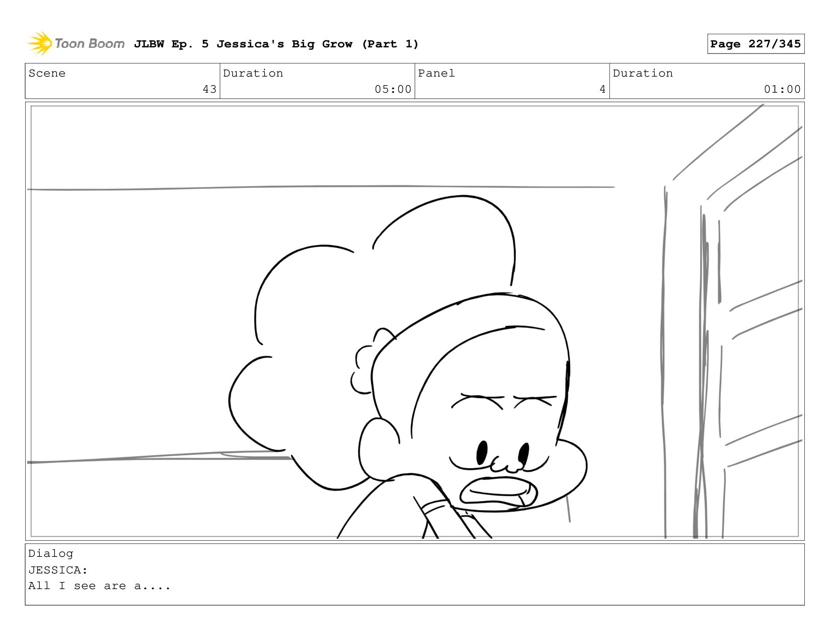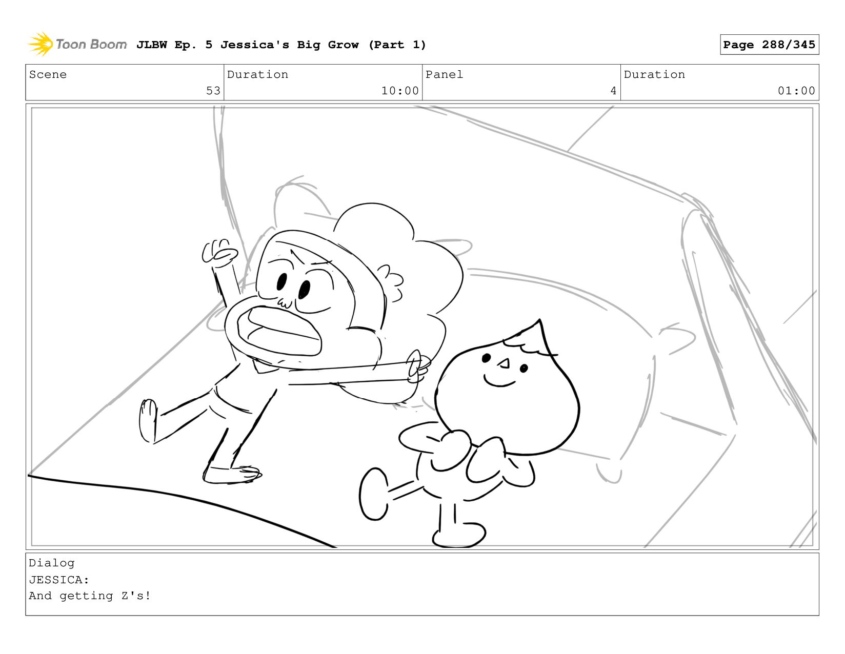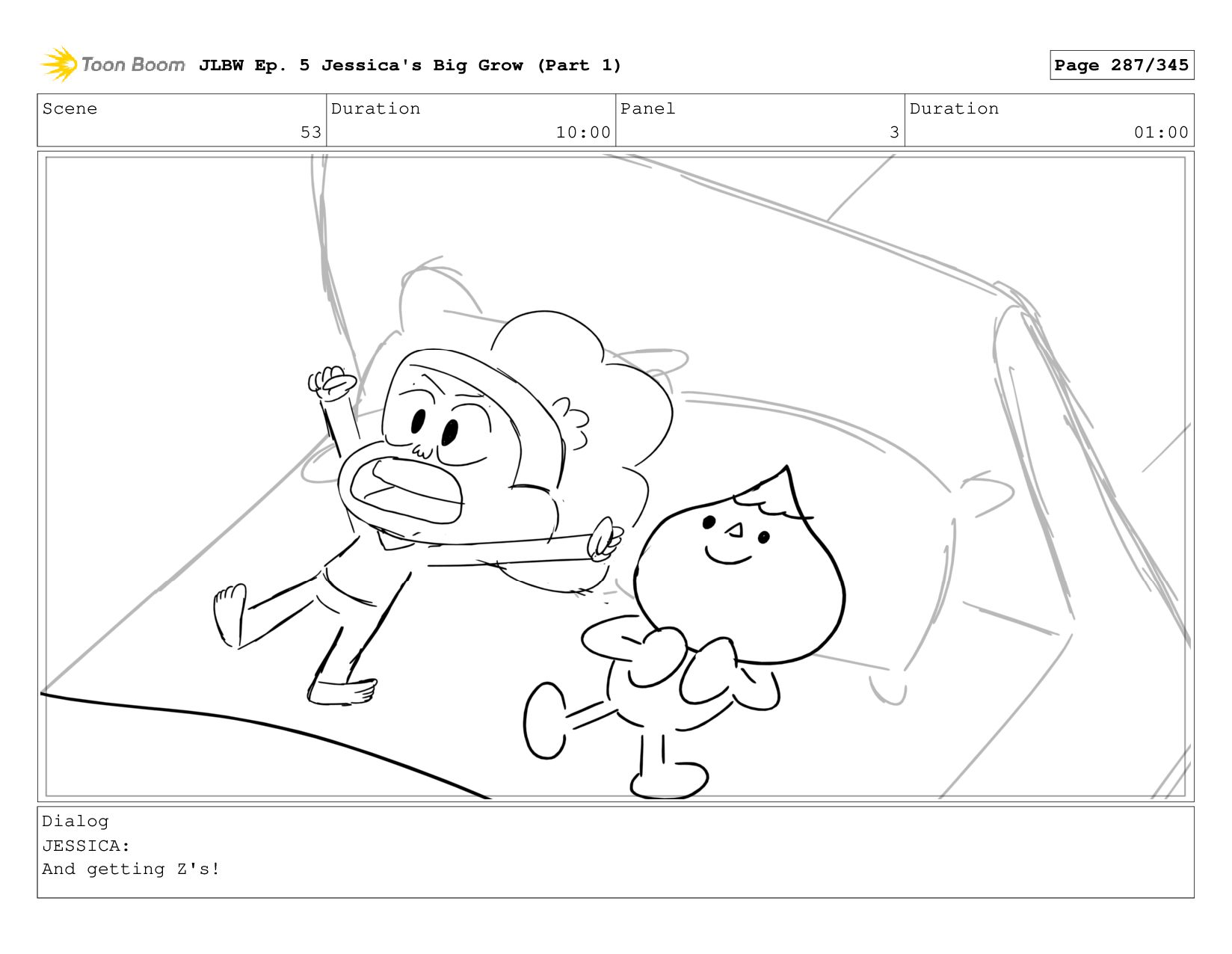 Scene 59 Duration 09:00 Panel 5 Duration 01:00 Dialog JESSICA:
