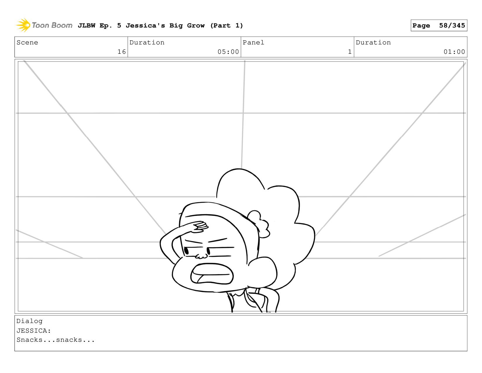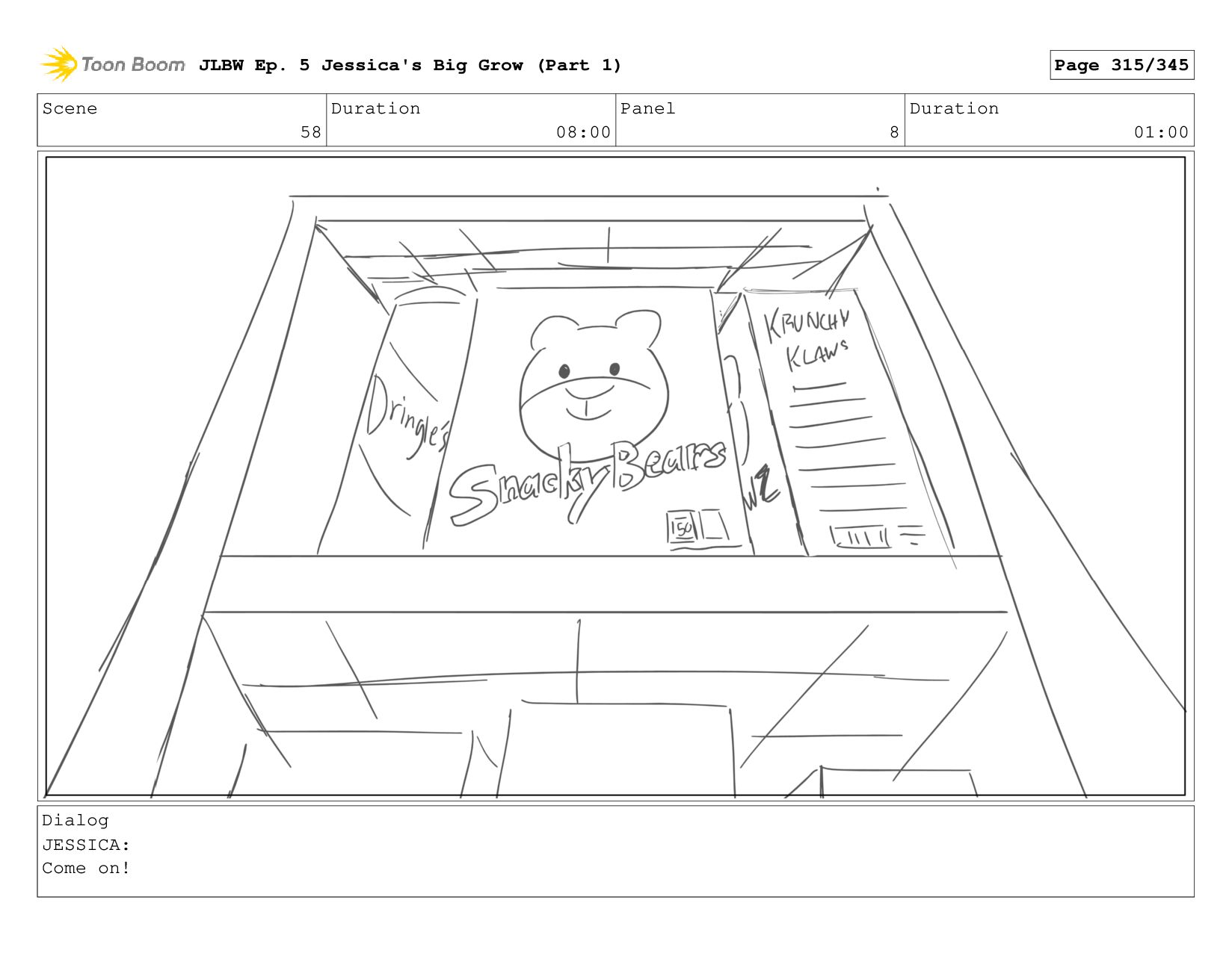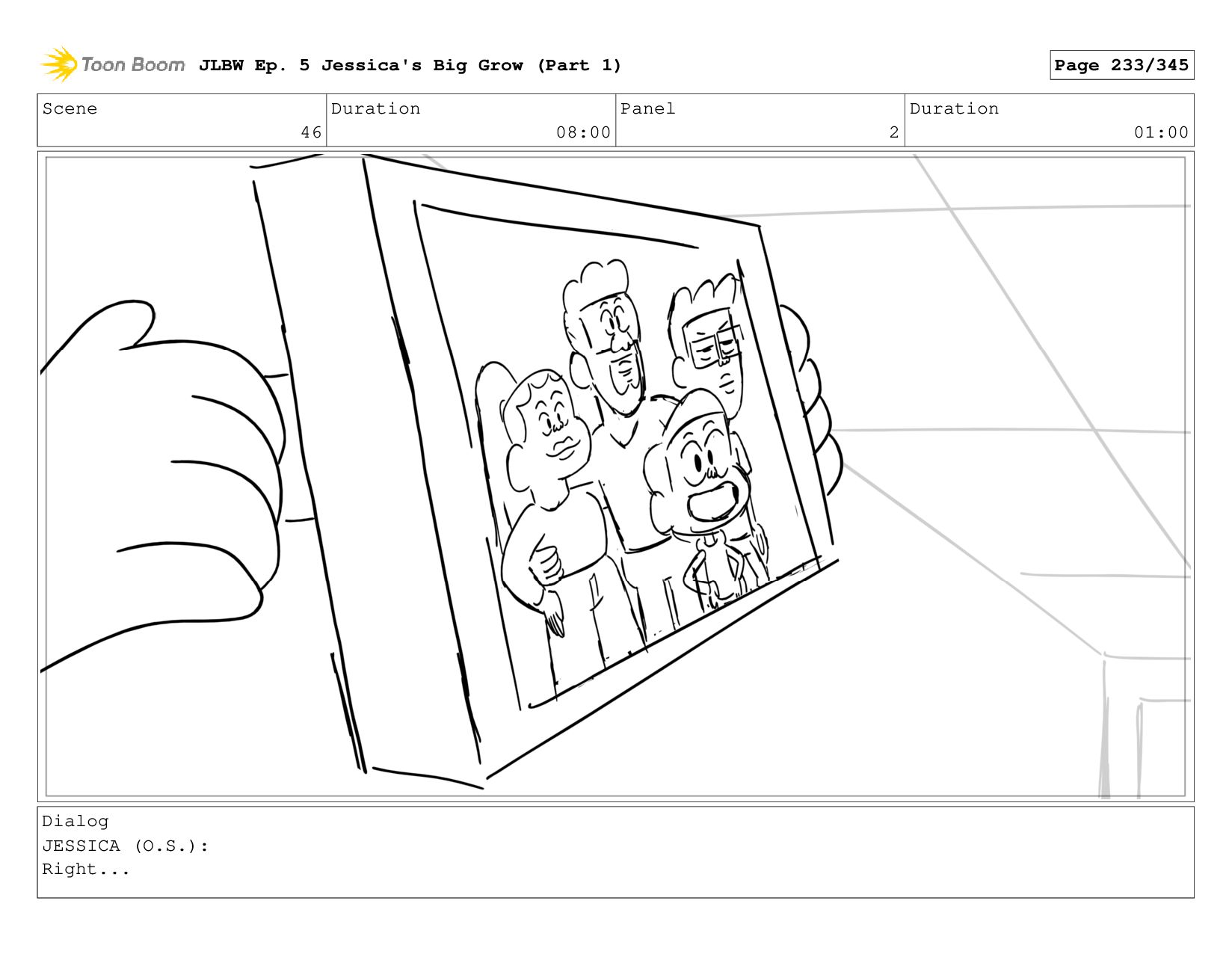 Scene 58 Duration 08:00 Panel 4 Duration 01:00 Dialog JESSICA: