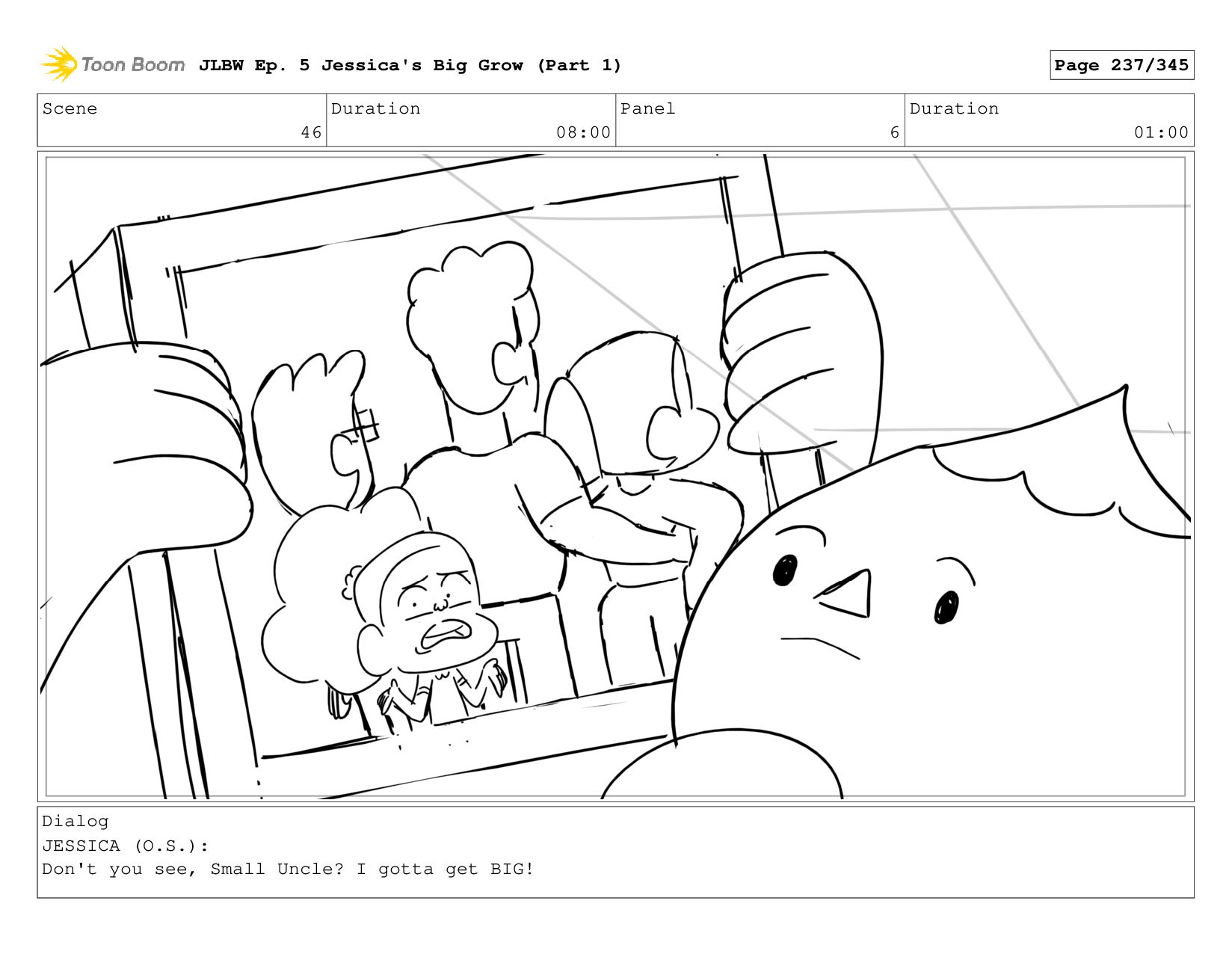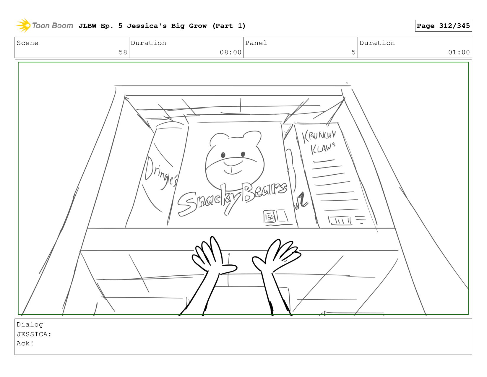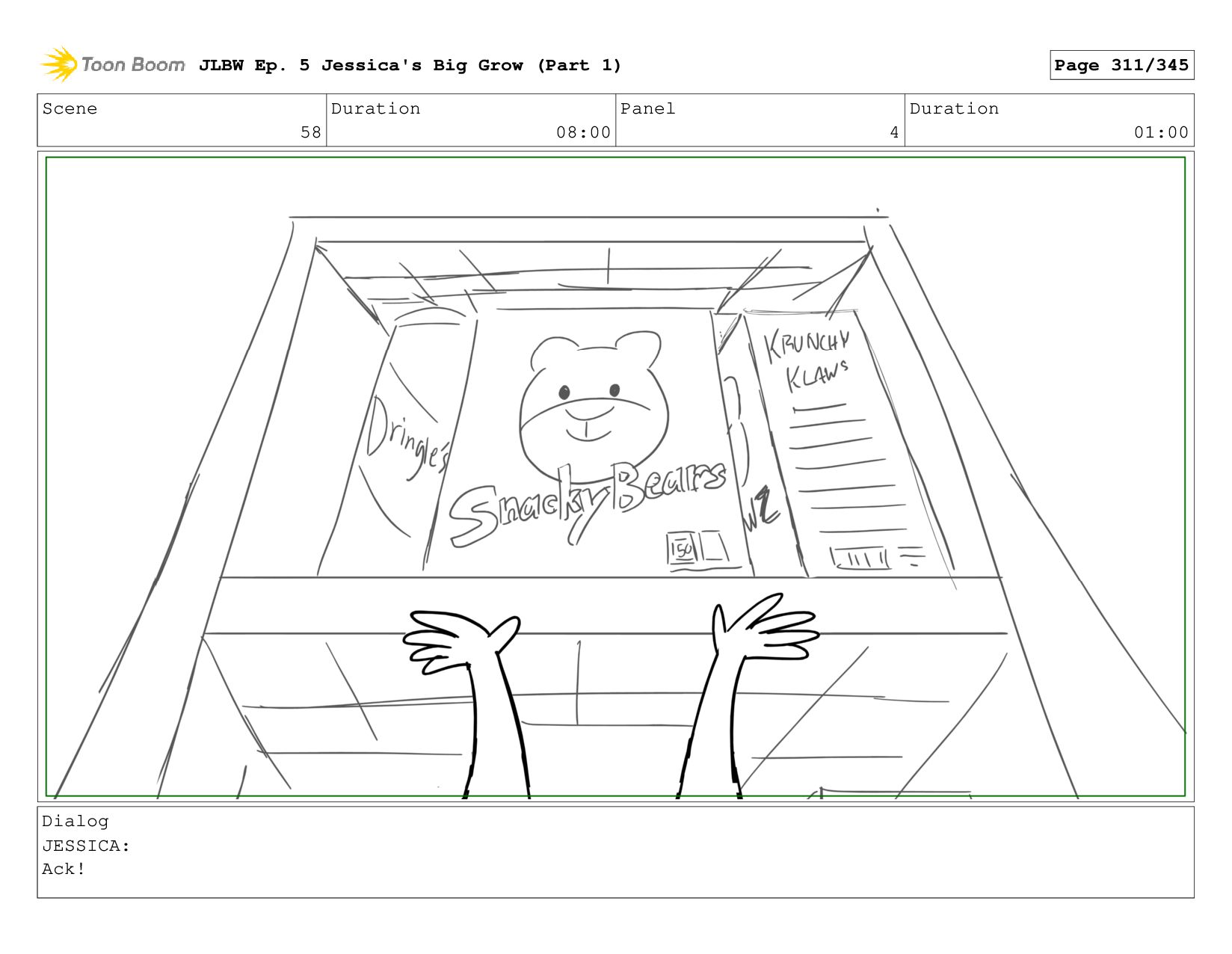 Scene 58 Duration 08:00 Panel 4 Duration 01:00 Dialog JESSICA: