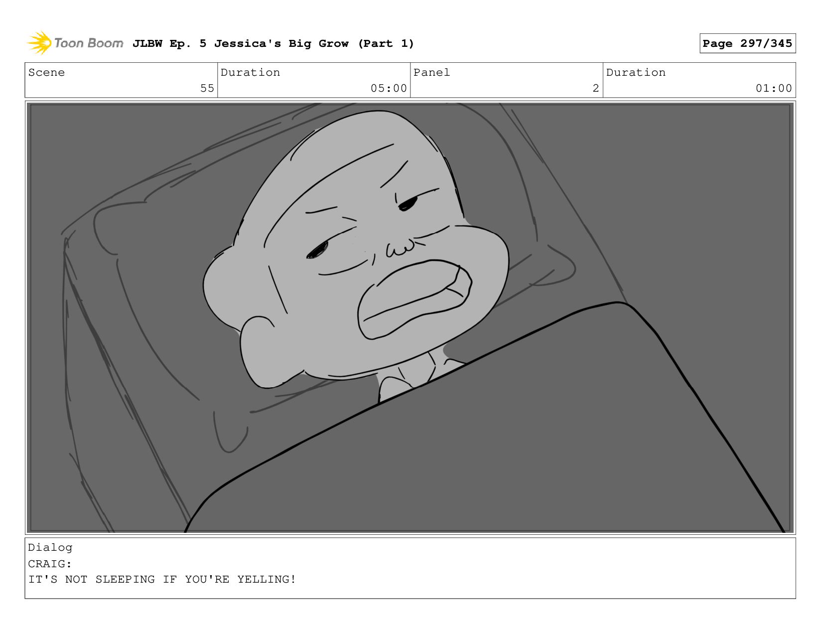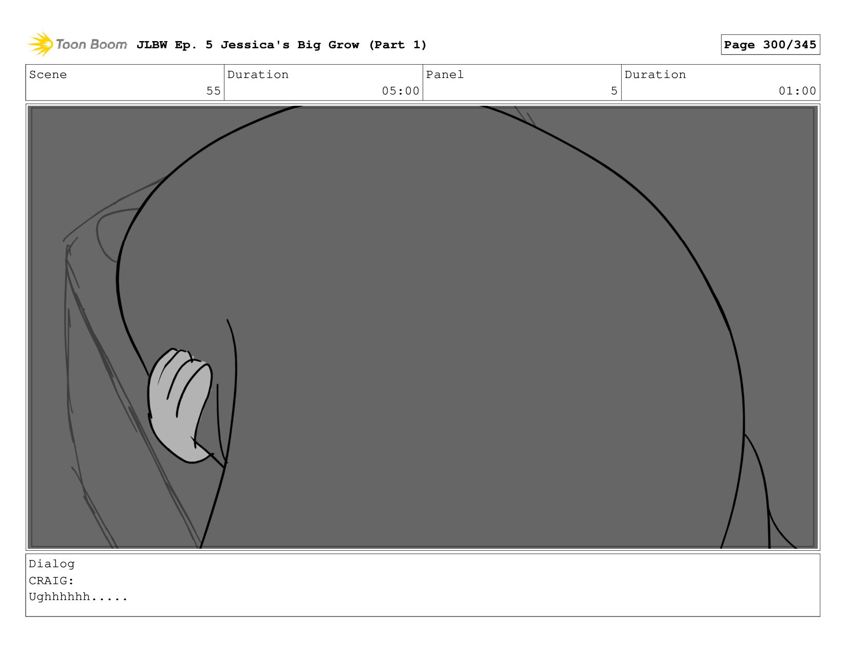 Scene 55 Duration 05:00 Panel 5 Duration 01:00 Dialog CRAIG: