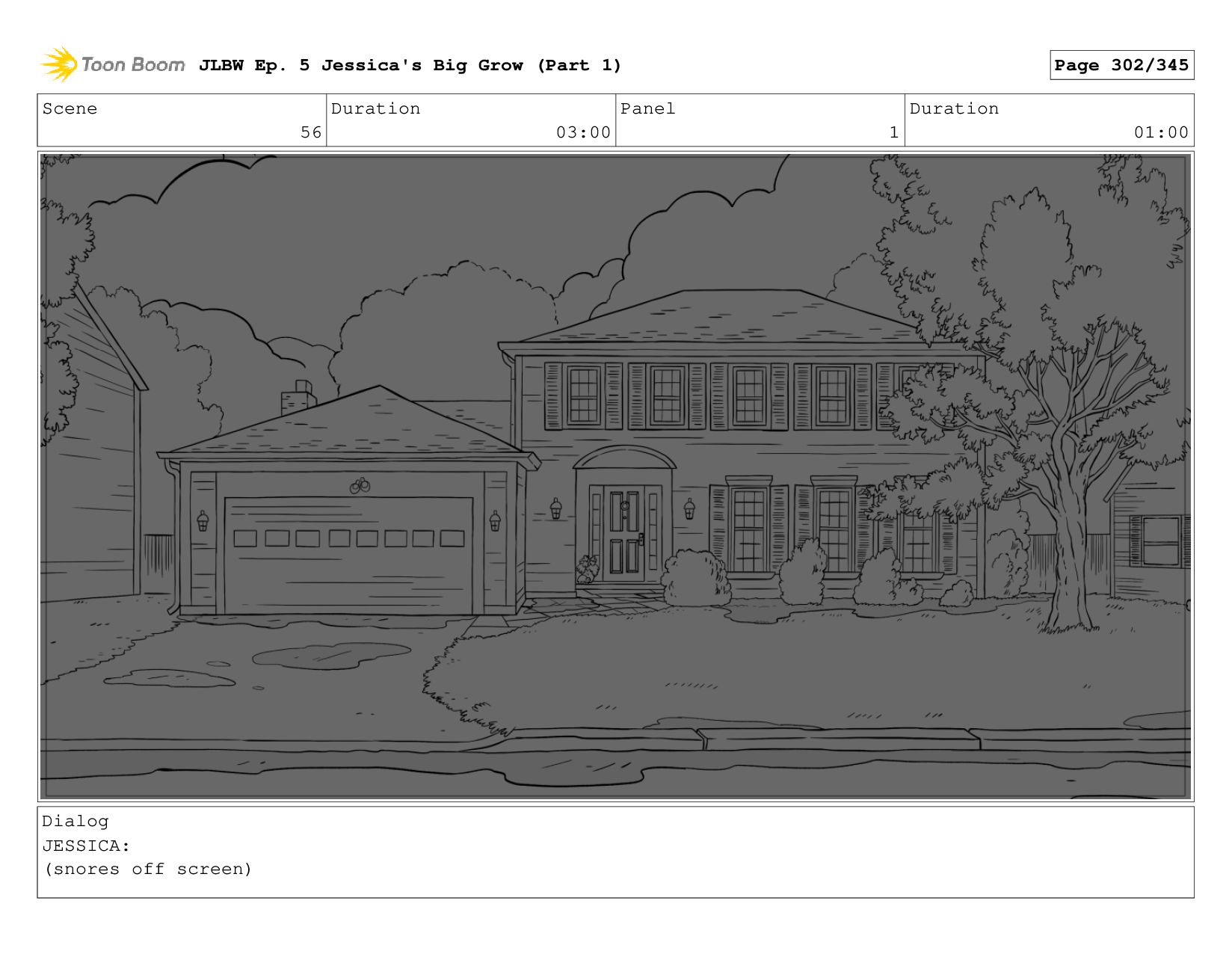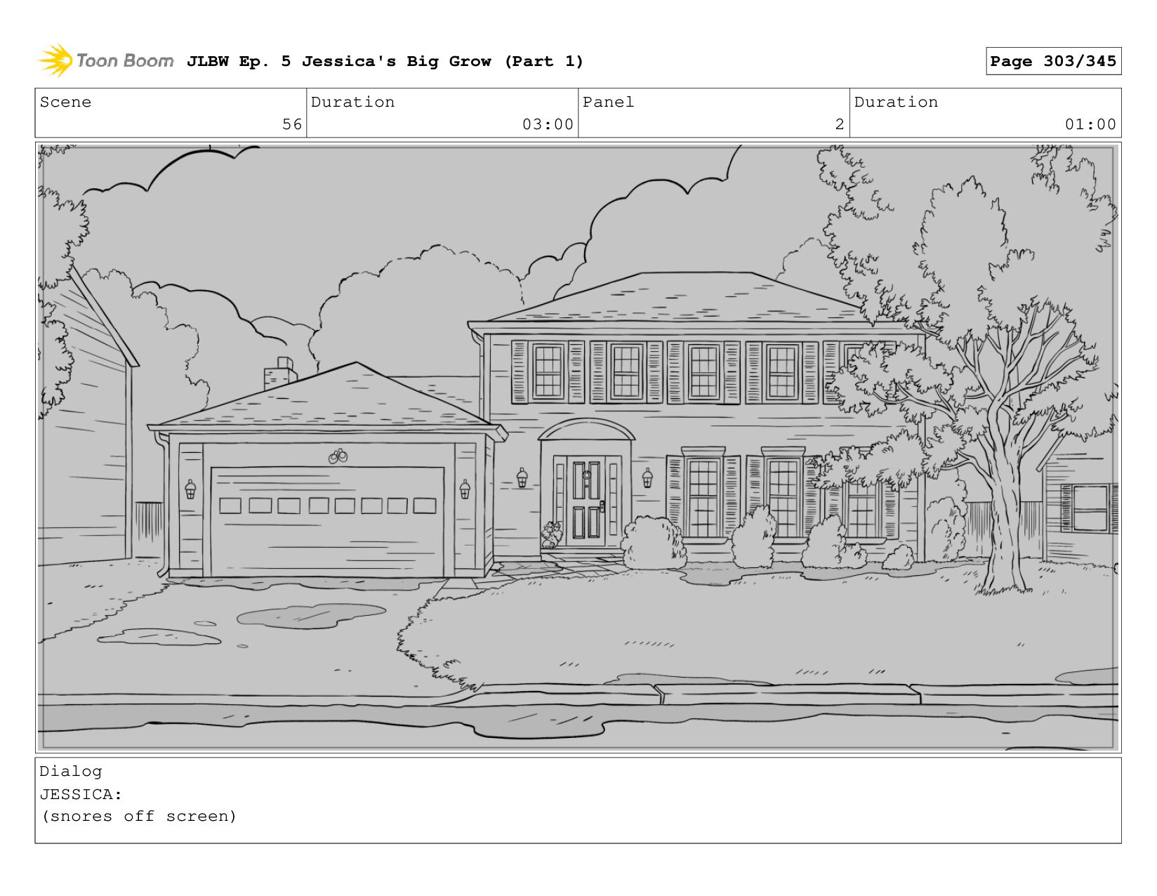 Scene 56 Duration 03:00 Panel 1 Duration 01:00 Dialog JESSICA: