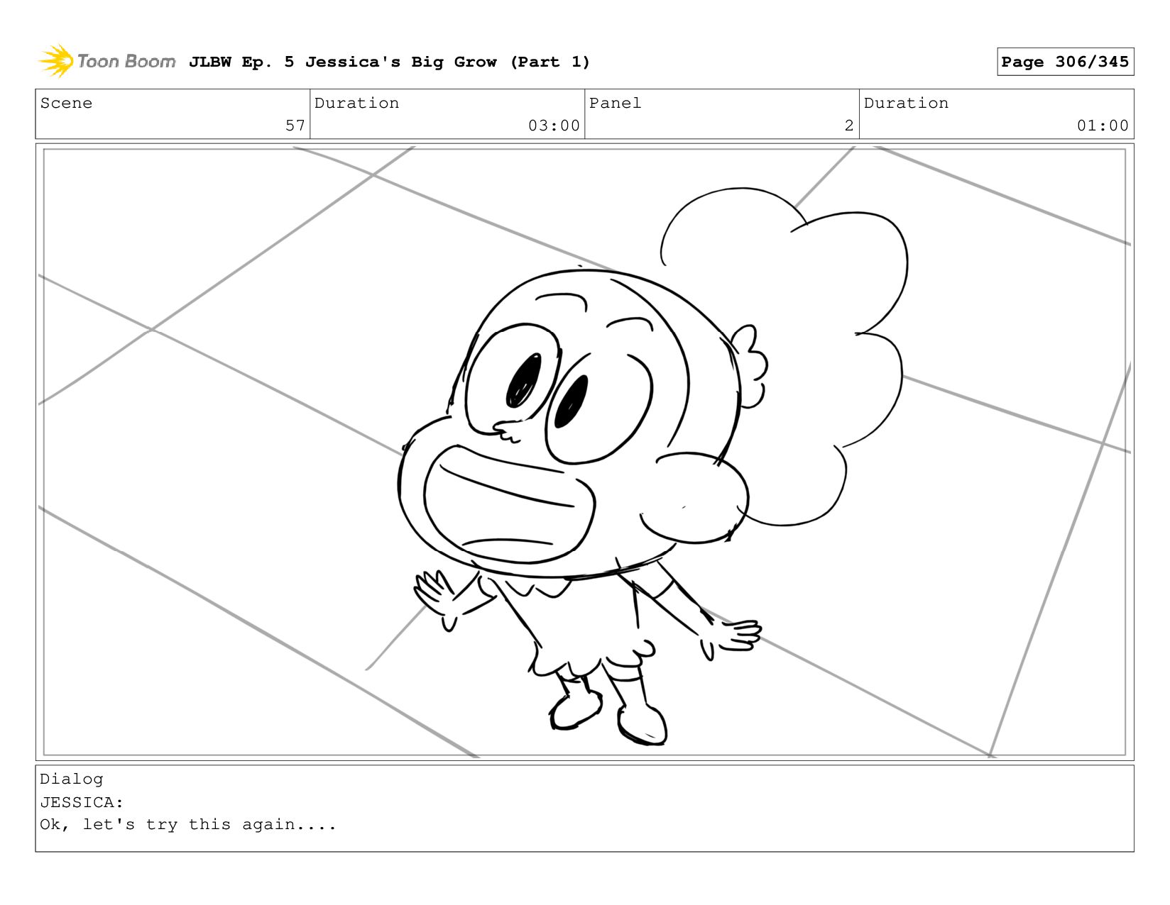 Scene 57 Duration 03:00 Panel 2 Duration 01:00 Dialog JESSICA:
