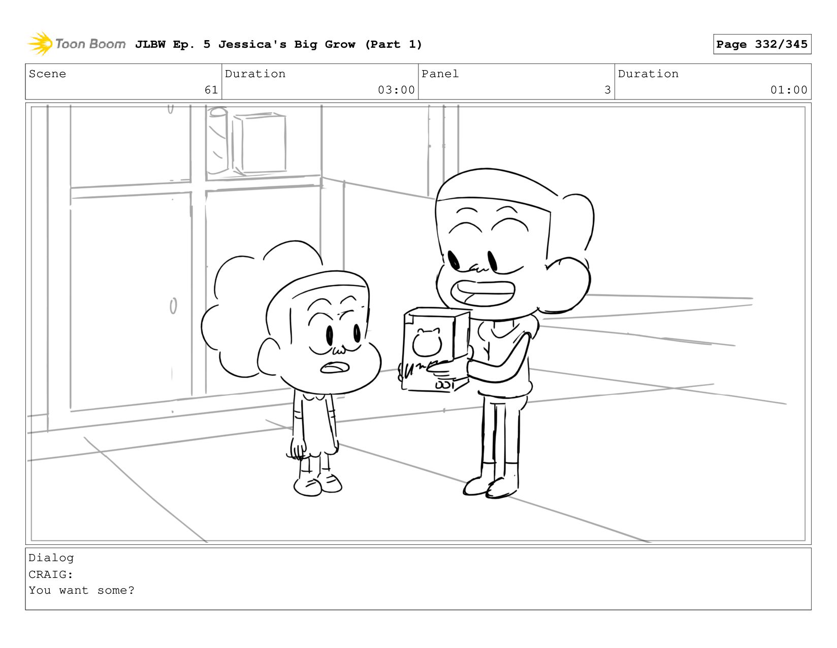 Scene 61 Duration 03:00 Panel 1 Duration 01:00 Dialog CRAIG: