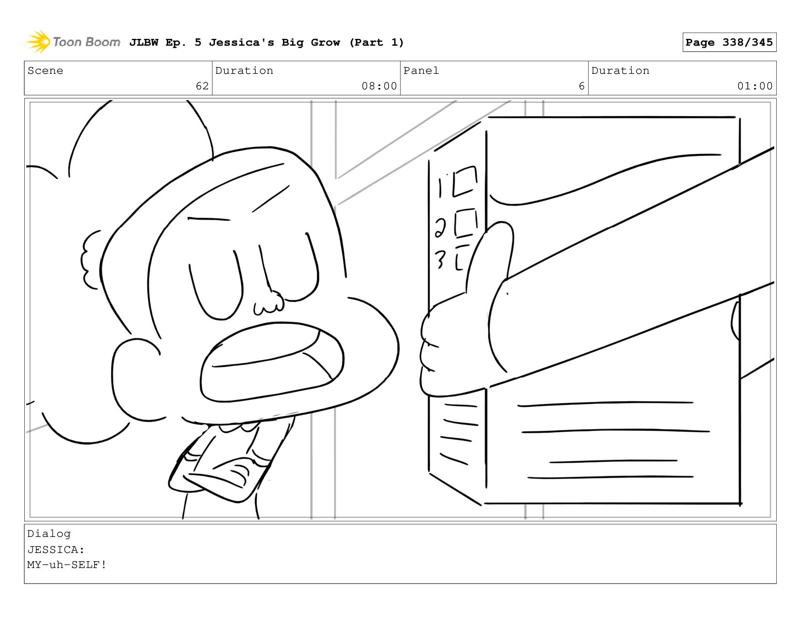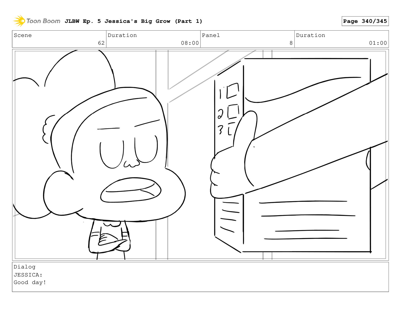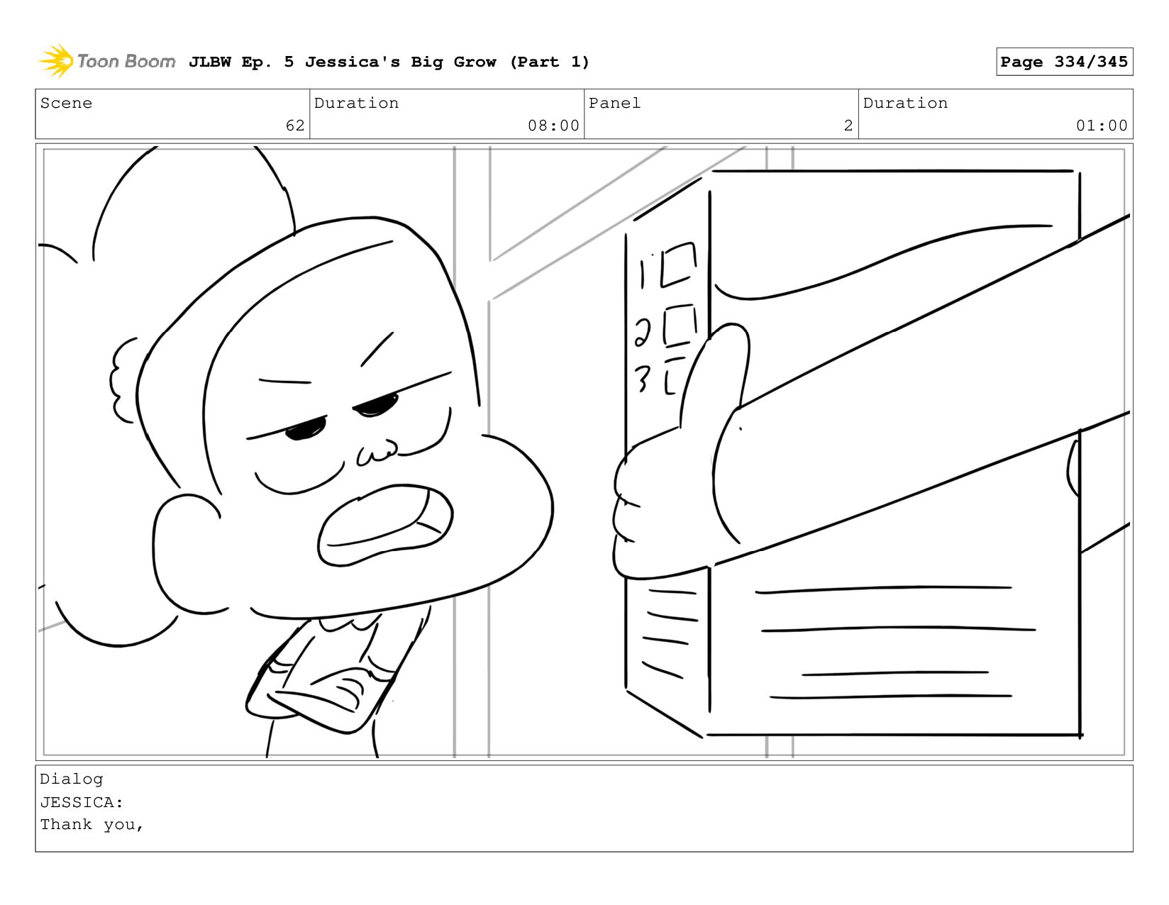 Scene 62 Duration 08:00 Panel 2 Duration 01:00 Dialog JESSICA: