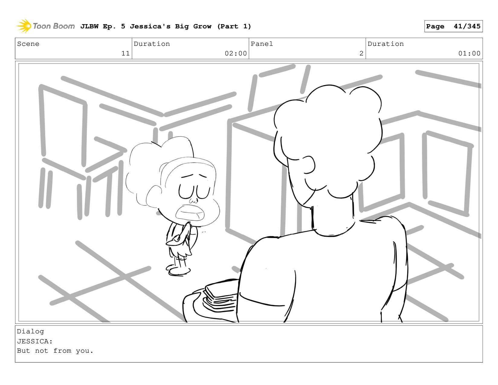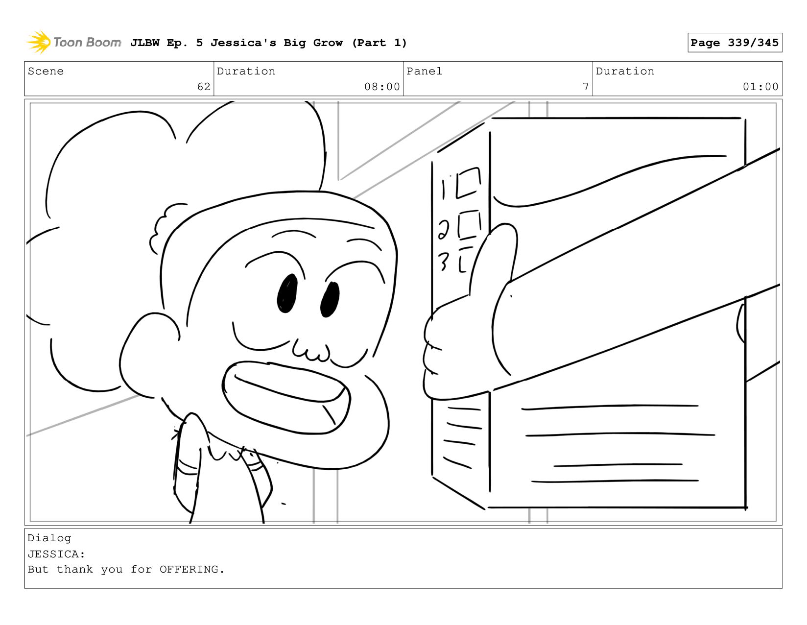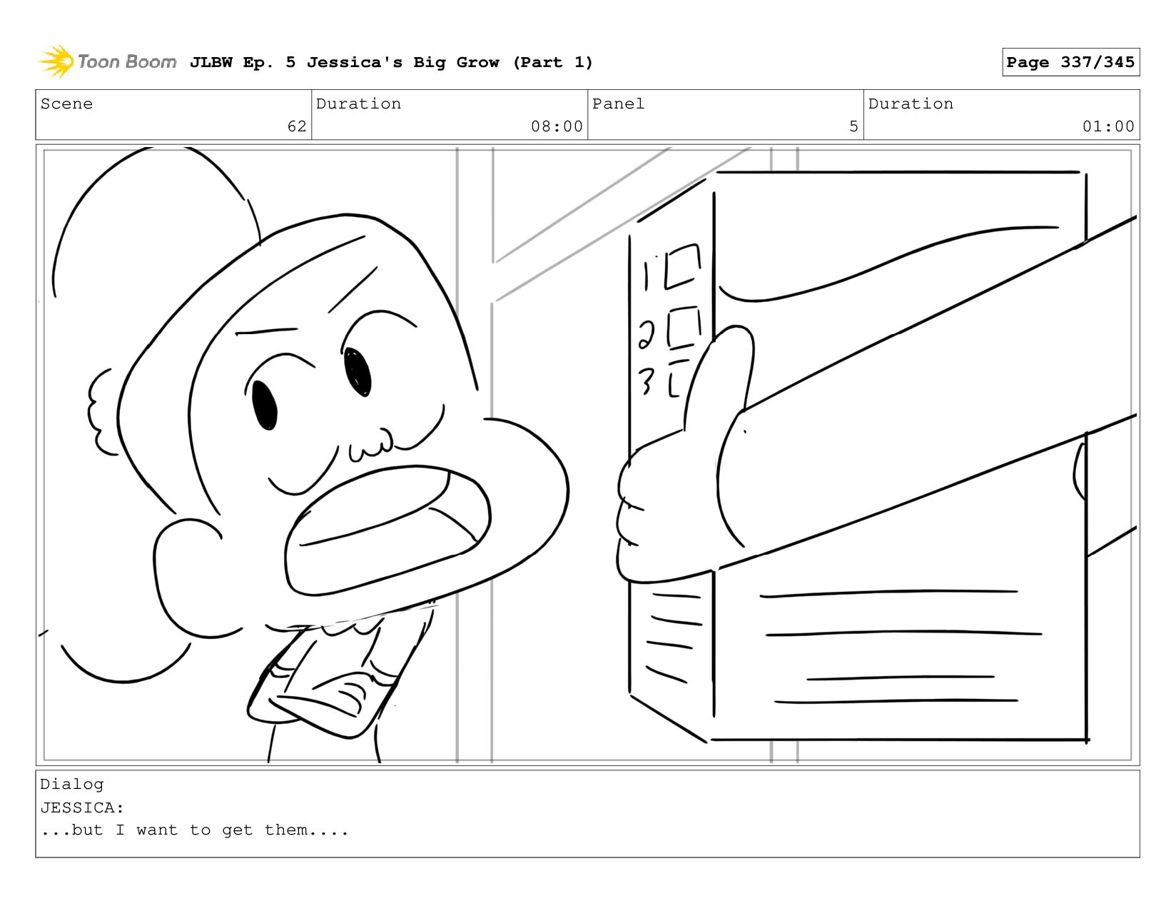 Scene 62 Duration 08:00 Panel 2 Duration 01:00 Dialog JESSICA: