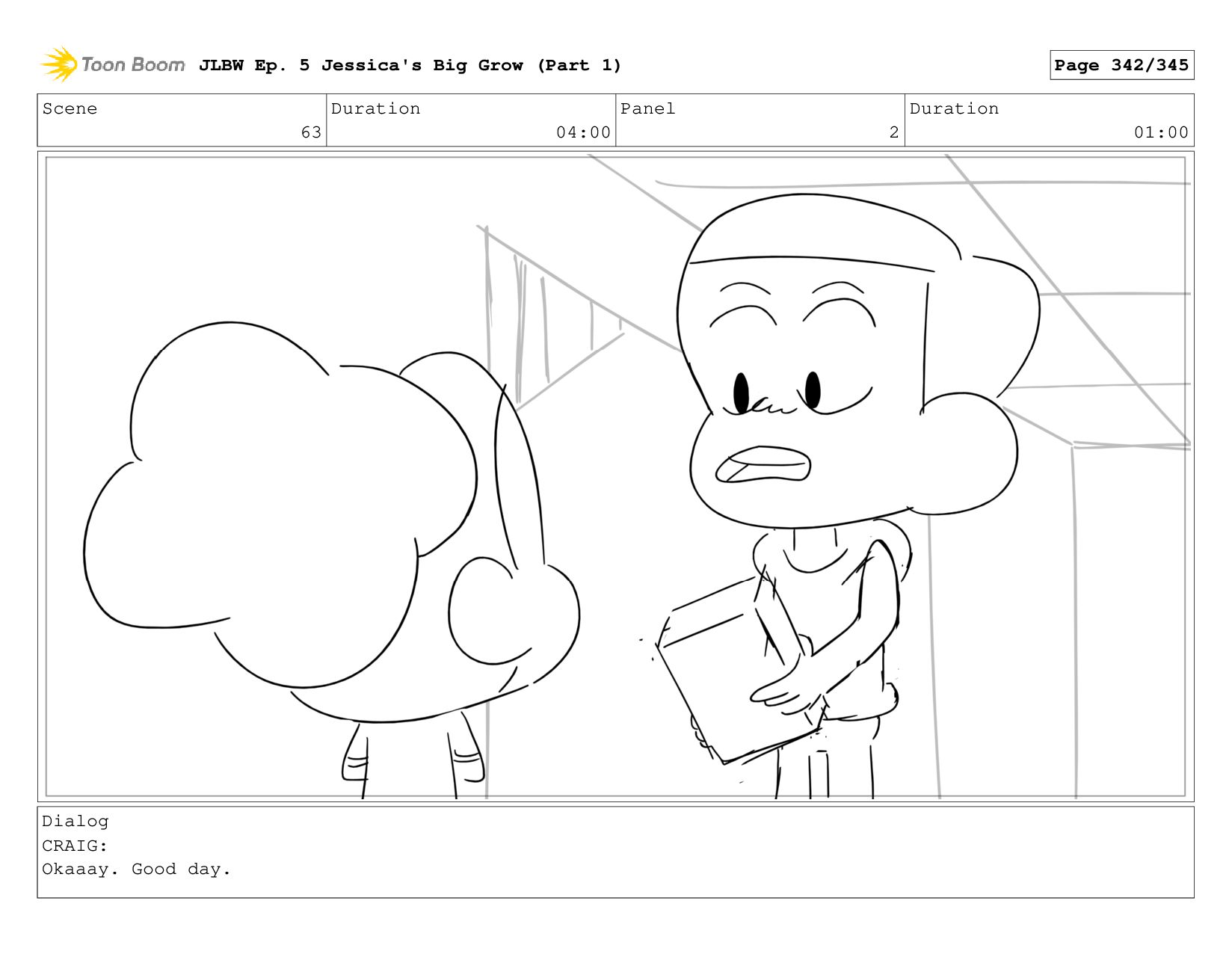 Scene 63 Duration 04:00 Panel 2 Duration 01:00 Dialog CRAIG: