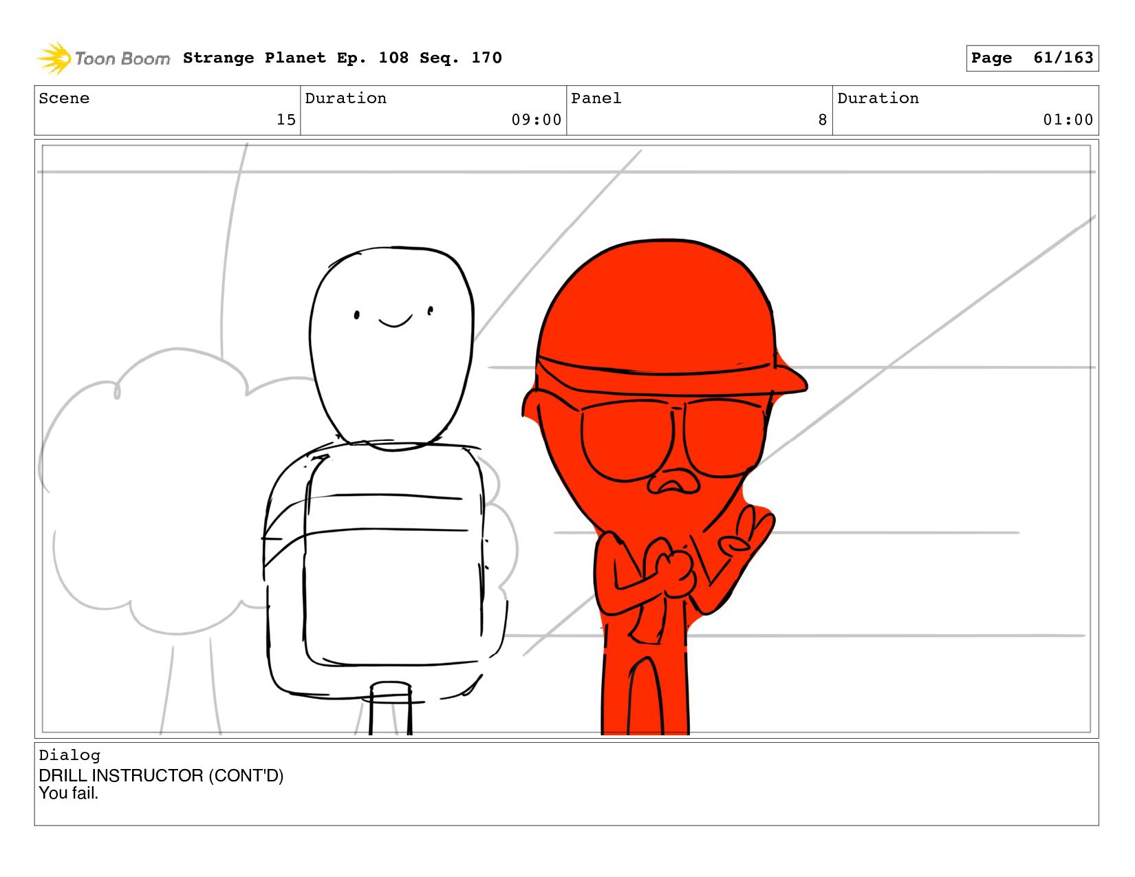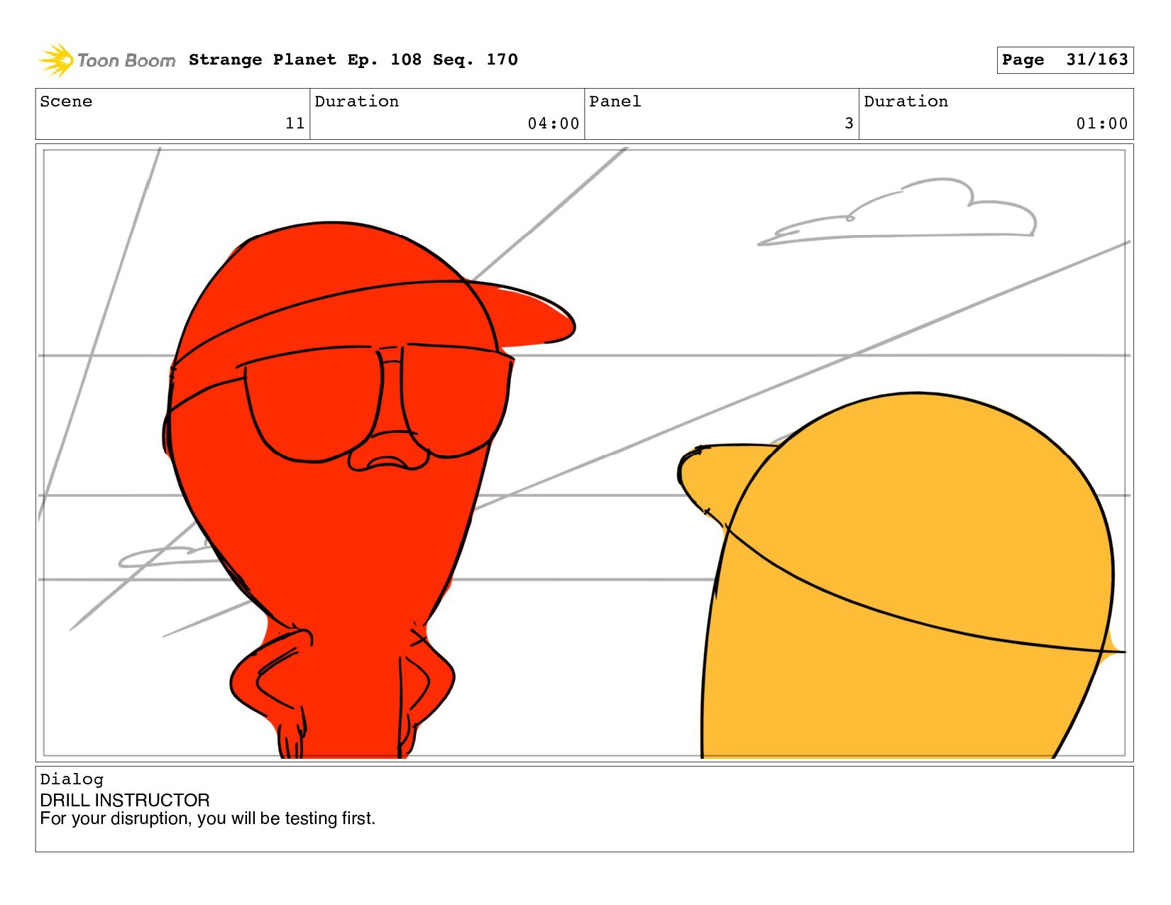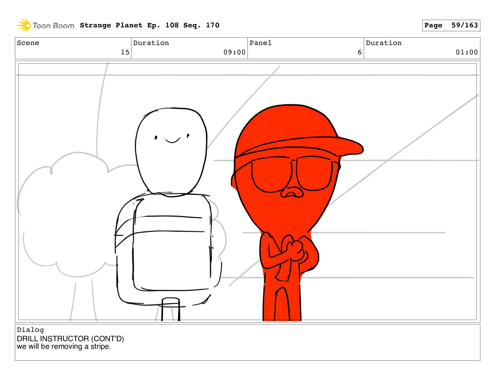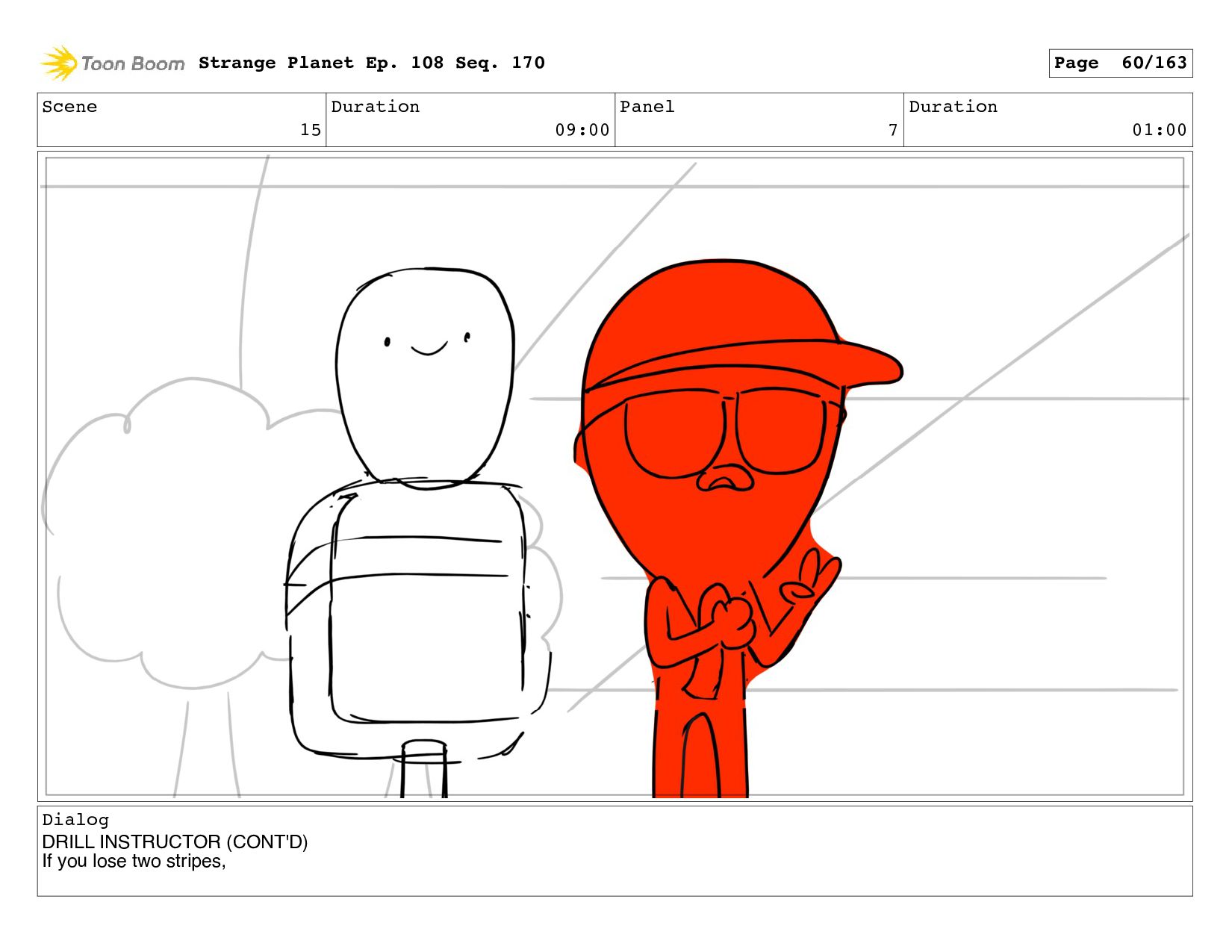 INSTRUCTOR Today we will be testing your abilities. We've set up a unique proving ground, upon which your recertification will stand or fail. Strange Planet Ep. 108 Seq. 170 Page 12/163