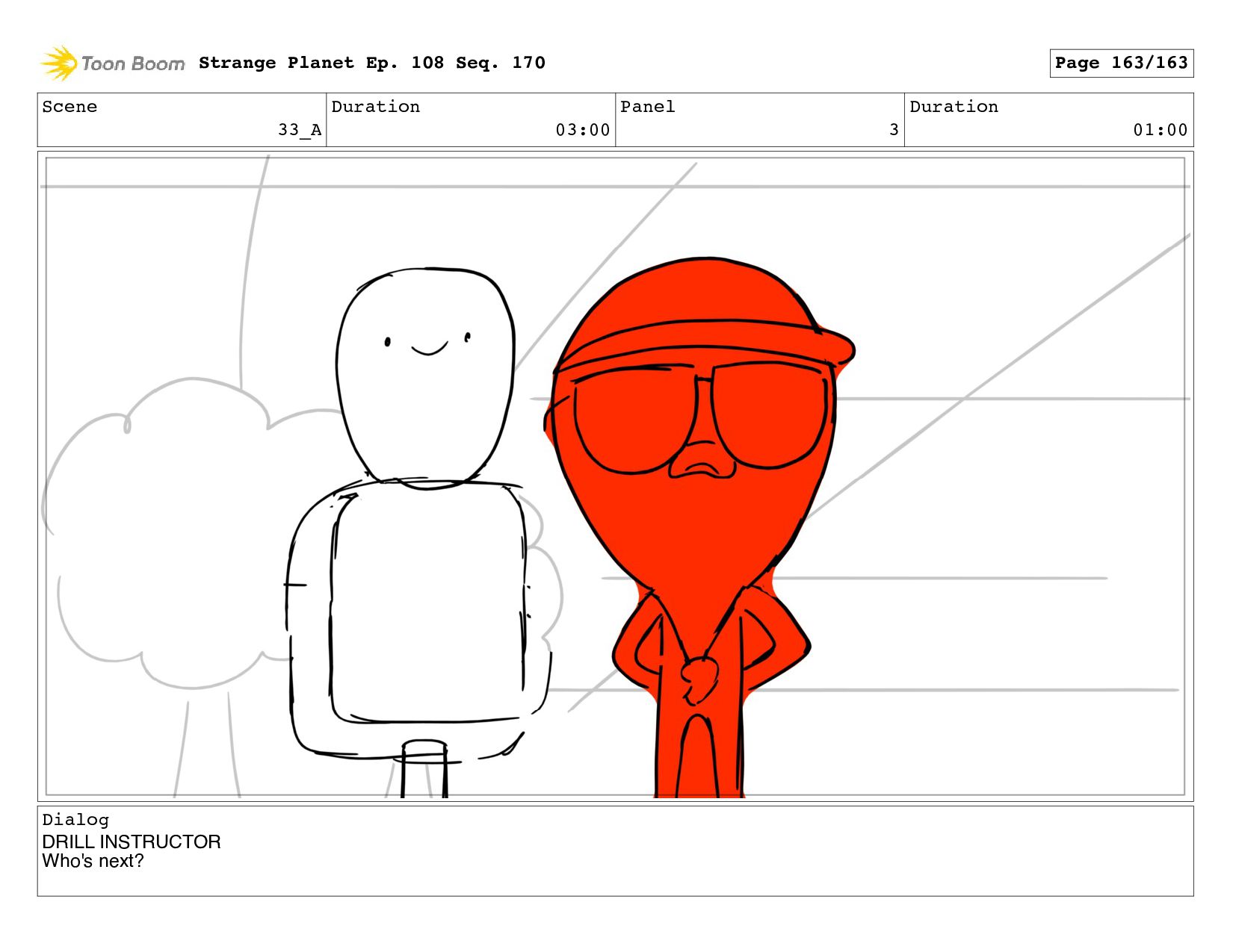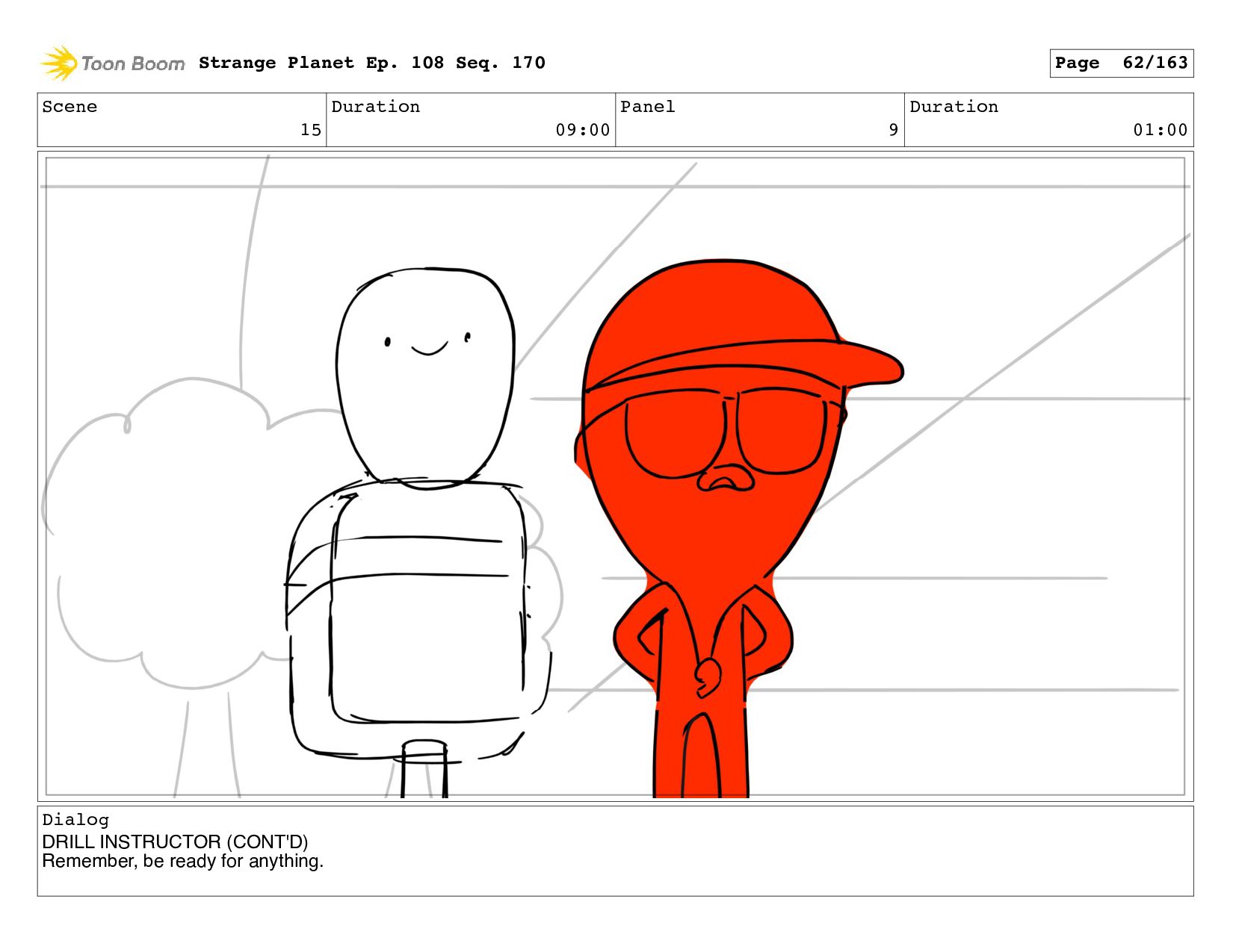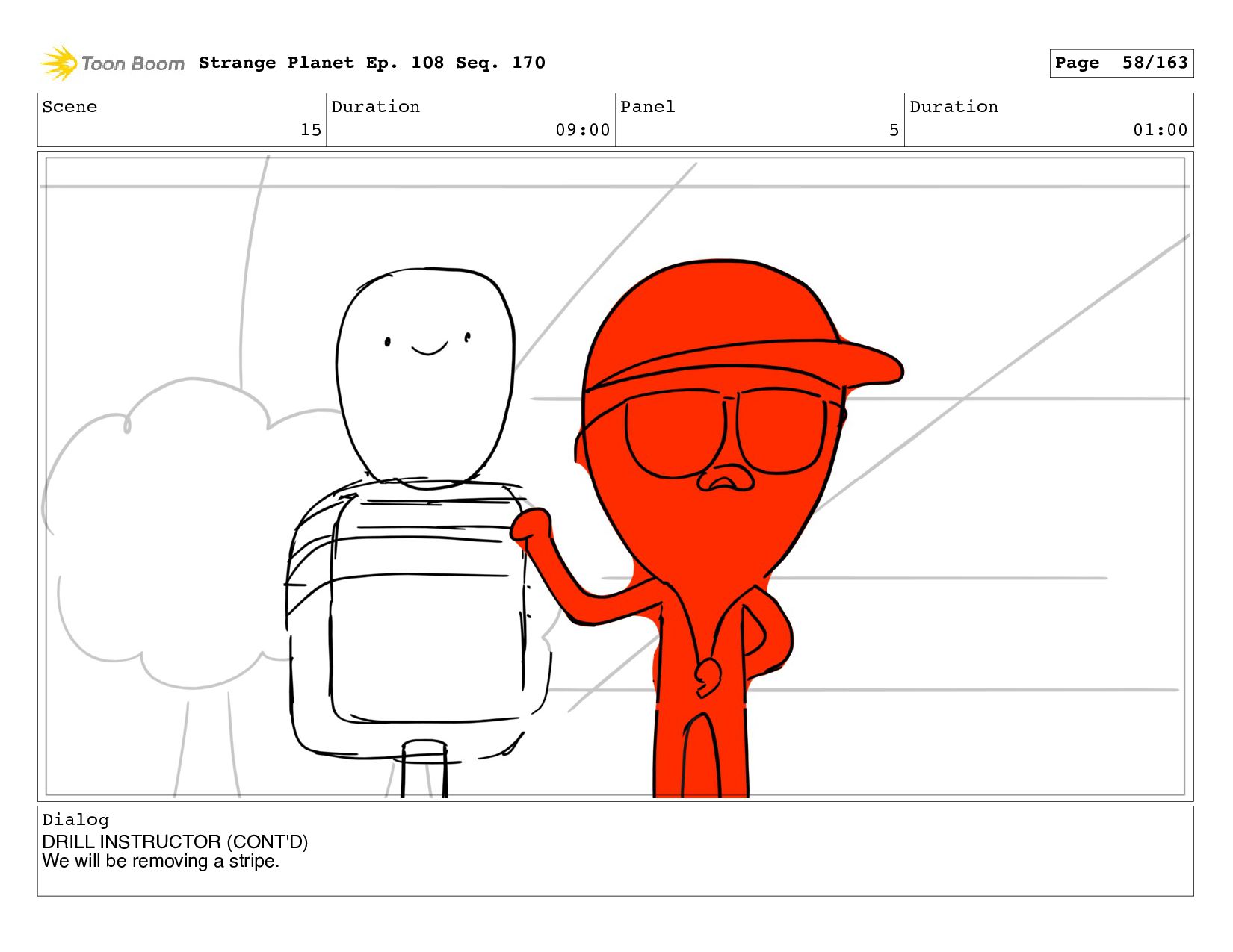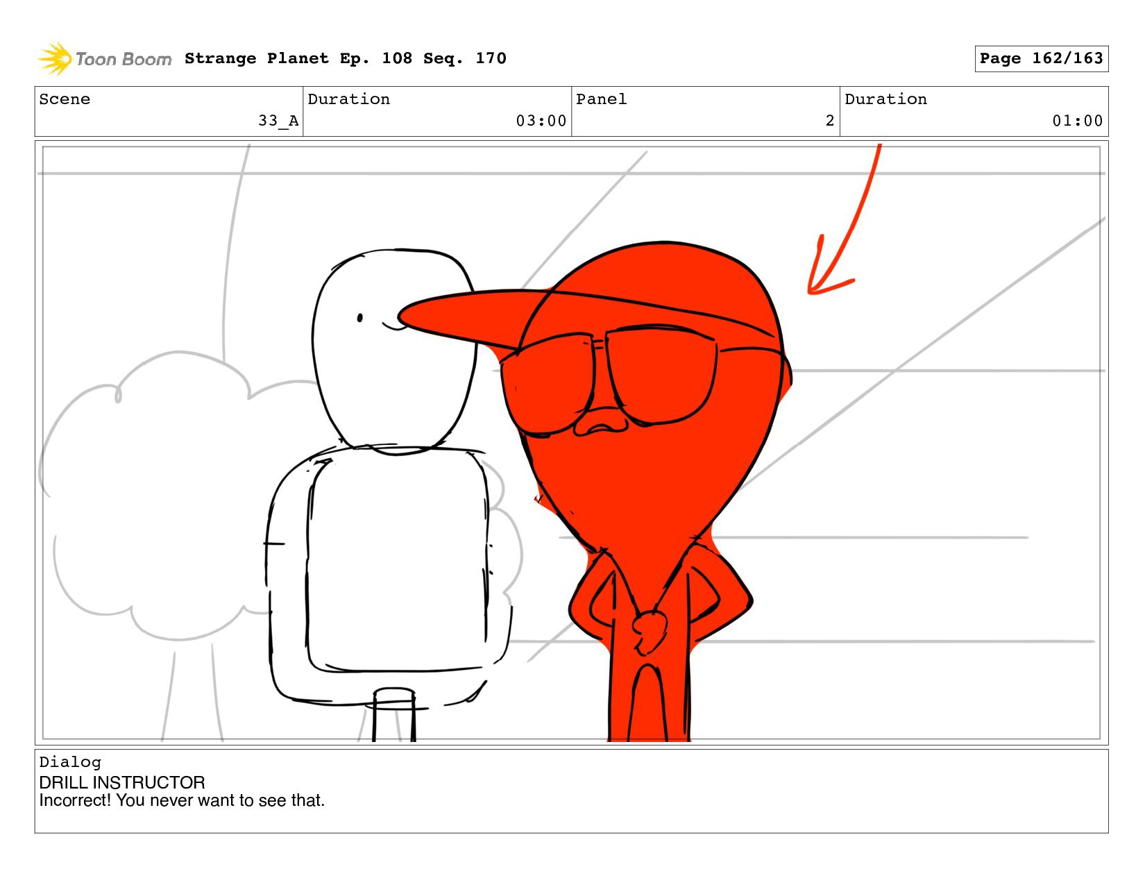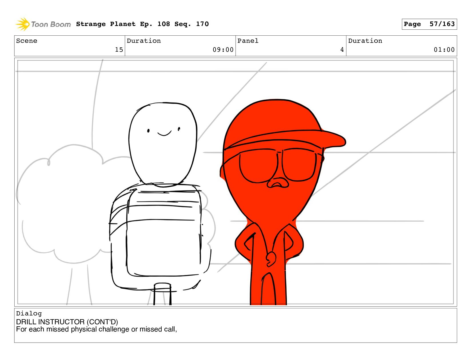 INSTRUCTOR Today we will be testing your abilities. We've set up a unique proving ground, upon which your recertification will stand or fail. Strange Planet Ep. 108 Seq. 170 Page 12/163