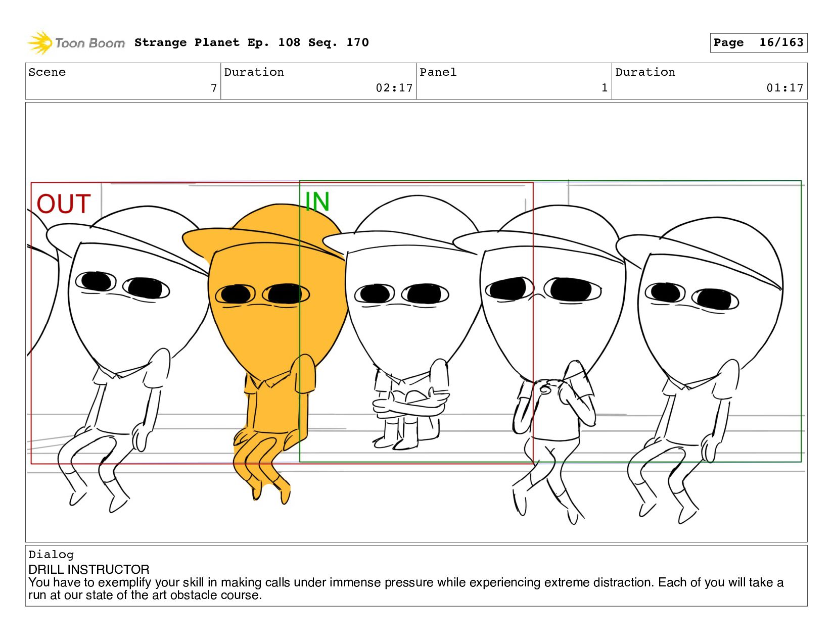 INSTRUCTOR You have to exemplify your skill in making calls under immense pressure while experiencing extreme distraction. Each of you will take a run at our state of the art obstacle course. Strange Planet Ep. 108 Seq. 170 Page 16/163