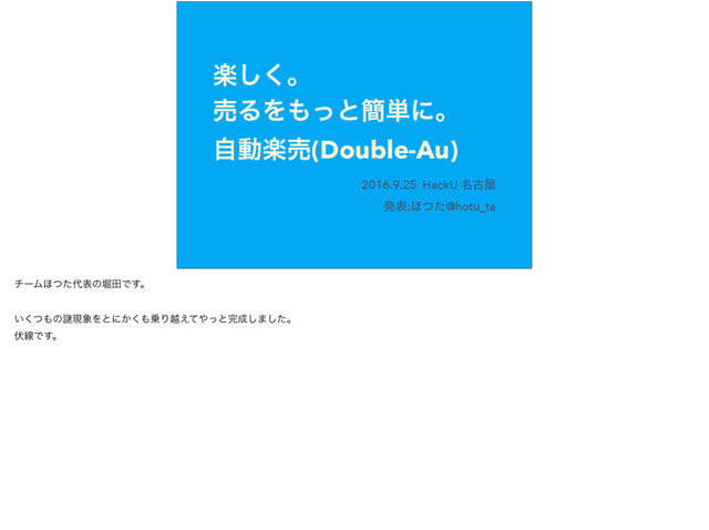Hack U 2016 名古屋会場 チームほつた ヤフオクの出品を自動化 自動楽売Double-Au(ダブルオウ) #hacku /hacku-2016-nagoya