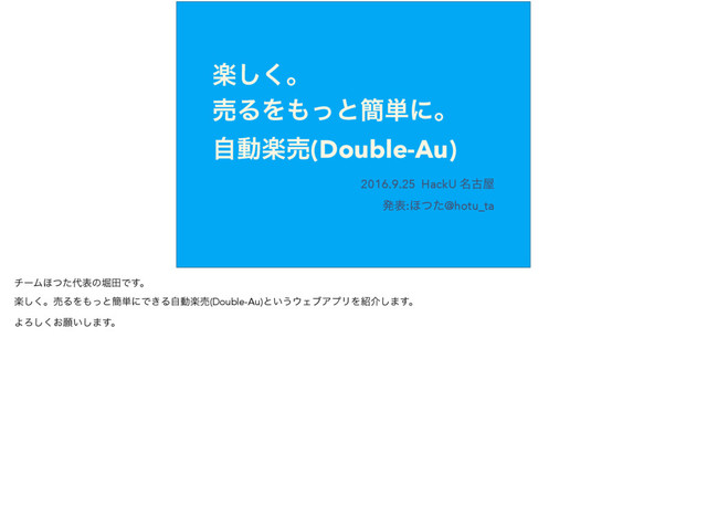 Hack U 2016 名古屋会場 チームほつた ヤフオクの出品を自動化 自動楽売Double-Au(ダブルオウ) #hacku /hacku-2016-nagoya