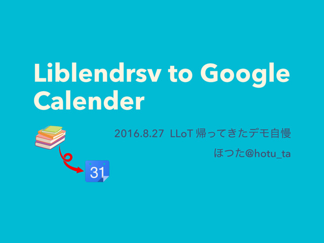 Googleカレンダーで図書館の貸出予約状況を管理するLiblendrsv https://github.com/hotuta/Liblendrsv