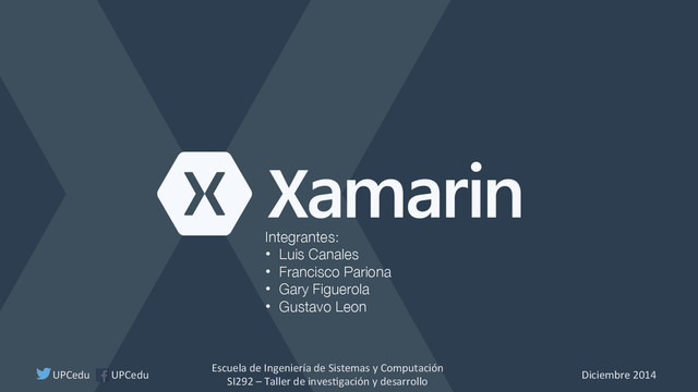 Estadísticas • Herramientas cross-platform por tiempo ahorrado • Herramientas cross-platform por complejidad de desarrollo § Xamarin Platform § Xamarin Studio § Xamarin for Visual Studio § Xamarin.Forms § Xamarin Test Cloud § Desarrolladores afiliados § Impulsores de Xamarin • Microsoft y Xamarin • SAP y Xamarin § Clientes § Casos de éxito