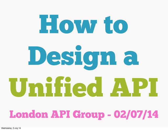 How to Design a Unified API London API Group -