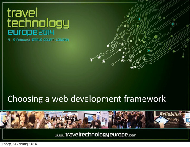 Slides from my talk at Travel Technology Europe 2014. Topic covered how to choosing a web development framework. Mainly stating that all languages and frameworks can achieve the same thing so you need to look to you customers and developers to influence your choice in technology.