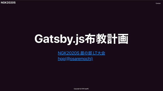 NGK2020Sにて発表したスライドです。 React製の静的サイトジェネレータであるGatsby.jsの良さに関して語ります。