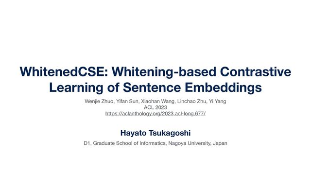 of Informatics, Nagoya University, Japan Hayato Tsukagoshi Wenjie Zhuo, Yifan Sun, Xiaohan Wang, Linchao Zhu, Yi Yang ACL 2023 https://aclanthology.org/2023.acl-long.677/