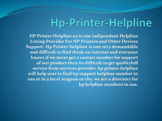 HP Printer Helpline.us is one indipendent Helpline Listing Provider For HP Printers and Other Devices Support. Hp Printer Helpline is one very demandable and difficult to find think on internet and everyone knows if we never get a contact number for support of our product then its difficult to get qualityfull service from services provider. https://hp-printer-helpline.us/