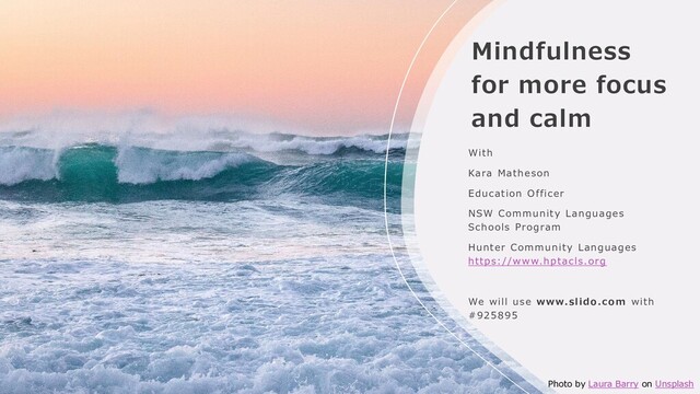 Officer NSW Community Languages Schools Program Hunter Community Languages https://www.hptacls.org We will use www.slido.com with #925895 Photo by Laura Barry on Unsplash