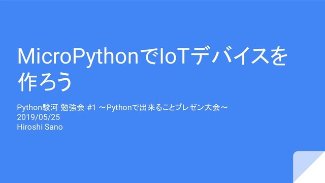 MicroPythonでIoTデバイスを 作ろう Python駿河 勉強会 #1 ~Pythonで出来ることプレゼン大会~ 2019/05/25 Hiroshi Sano