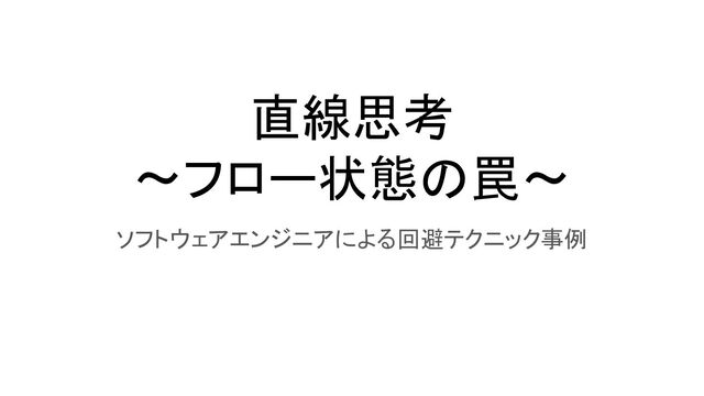 このスライドでは、直線思考に立ち向かうために自分が実践したテクニックを紹介します。