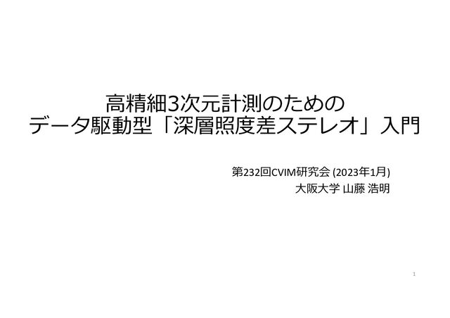 ⾼精細3次元計測のための データ駆動型「深層照度差ステレオ」⼊⾨ 第232回CVIM研究会 (2023年1⽉) ⼤阪⼤学 ⼭藤 浩明 1
