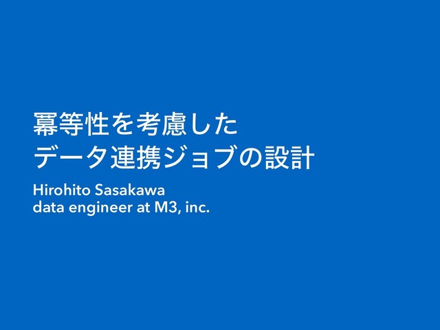 ႈੑΛߟྀͨ͠ σʔλ࿈ܞδϣϒͷઃܭ Hirohito Sasakawa data engineer at M3, inc.