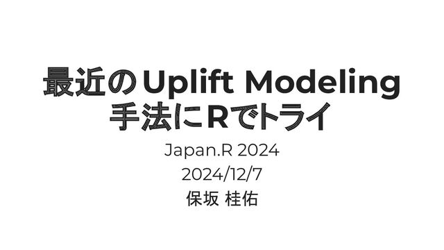 最近のUplift Modeling 手法にRでトライ Japan.R 2024 2024/12/7 保坂 桂佑