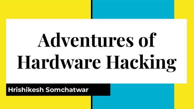 to use these tools. • Basic Hardware Attacks. • Communication Protocols. (Abstract Explanation) • My Failures while hacking hardware with cheap tools. • Total cost to build your own Hardware Lab. (>46$) • Hardware Recon 101.