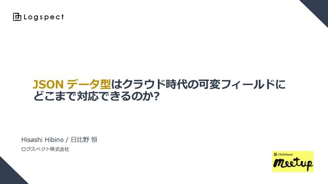 JSON データ型はクラウド時代の可変フィールドに どこまで対応できるのか? Hisashi Hibino / 日比野 恒 ログスペクト株式会社