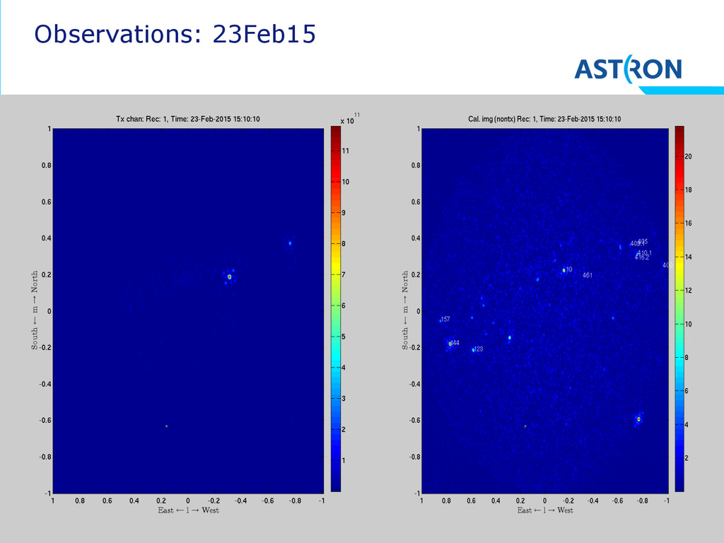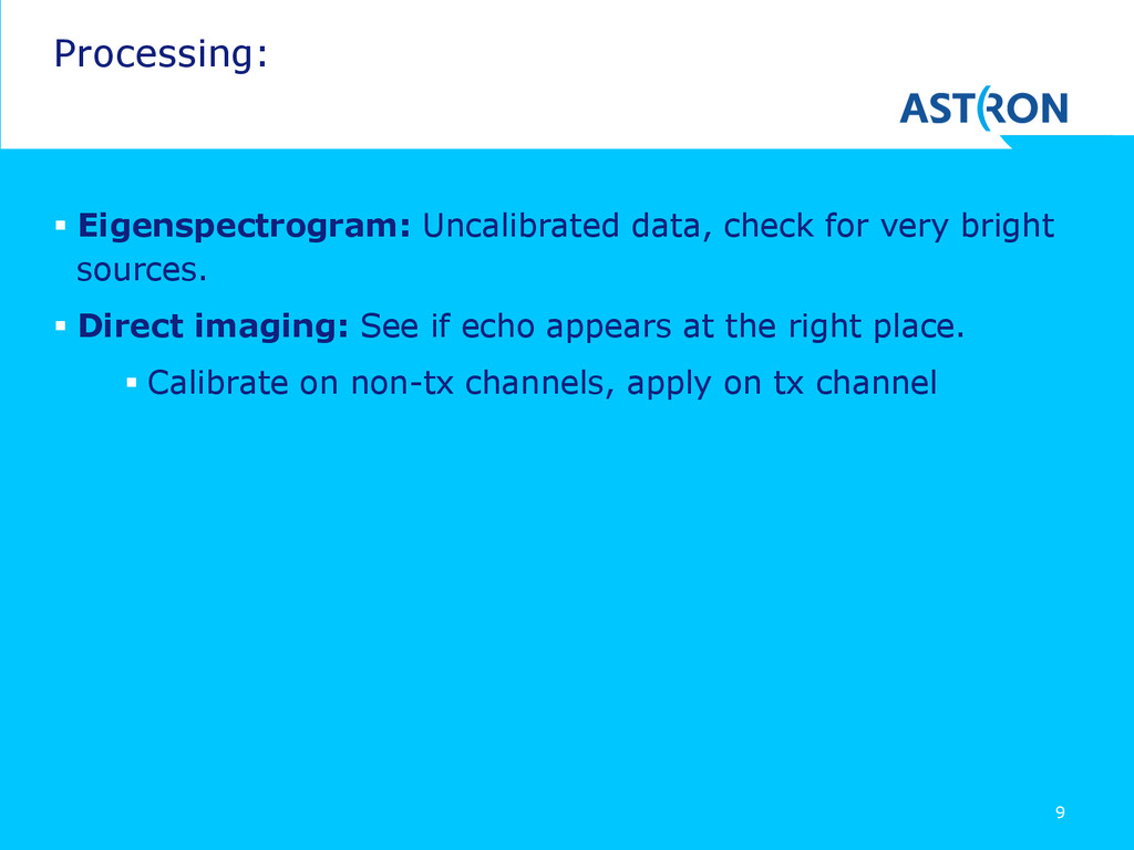 § Direct imaging: See if echo appears at the right place. § Calibrate on non-tx channels, apply on tx channel § Not seen. Direct Tx signal too bright. Needs to be subtracted. 14