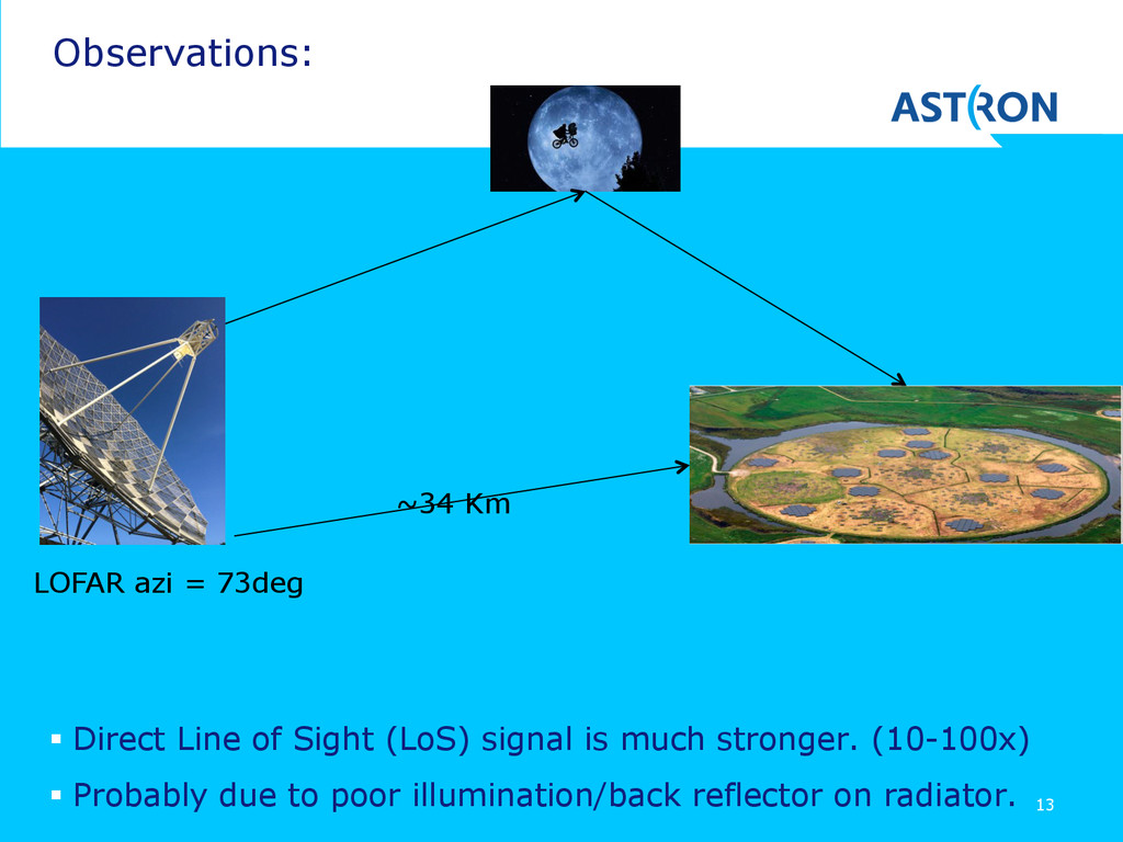 visible after a little integration. § Transmission leakage appears as strong source in AARTFAAC, detrimental to integration. § Leakage from dish can be successfully modeled and subtracted. § Leakage signal illuminates a large area, causing reflections off aircraft to be detected at lower levels (difficult to model). 18