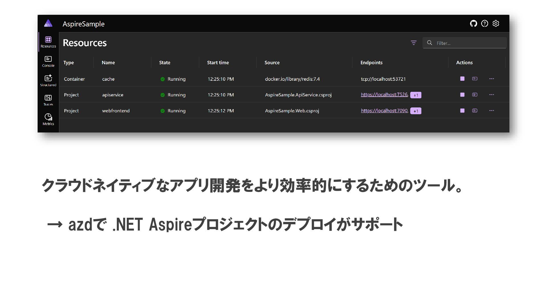 クラウドネイティブなアプリ開発をより効率的にするためのツール。 → azdで .NET Aspireプロジェクトのデプロイがサポート