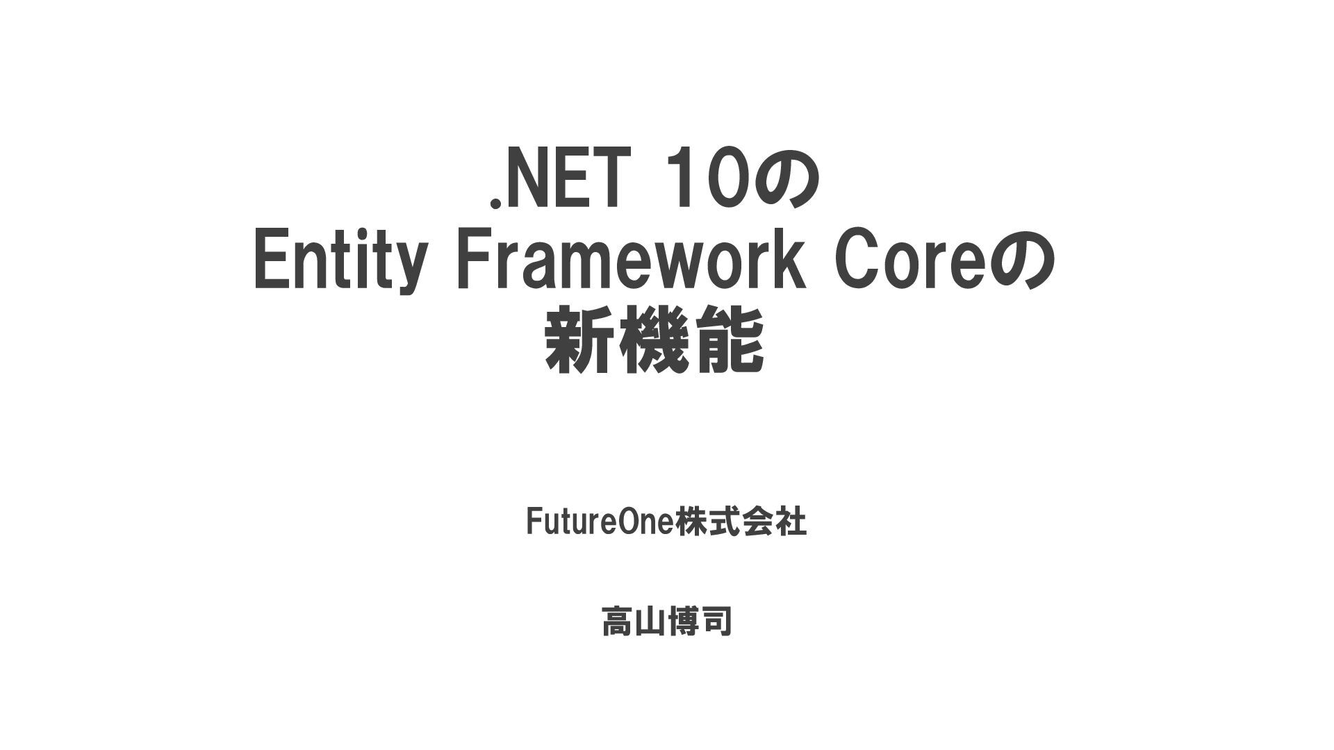 .NET 10の Entity Framework Coreの 新機能 FutureOne株式会社 高山博司