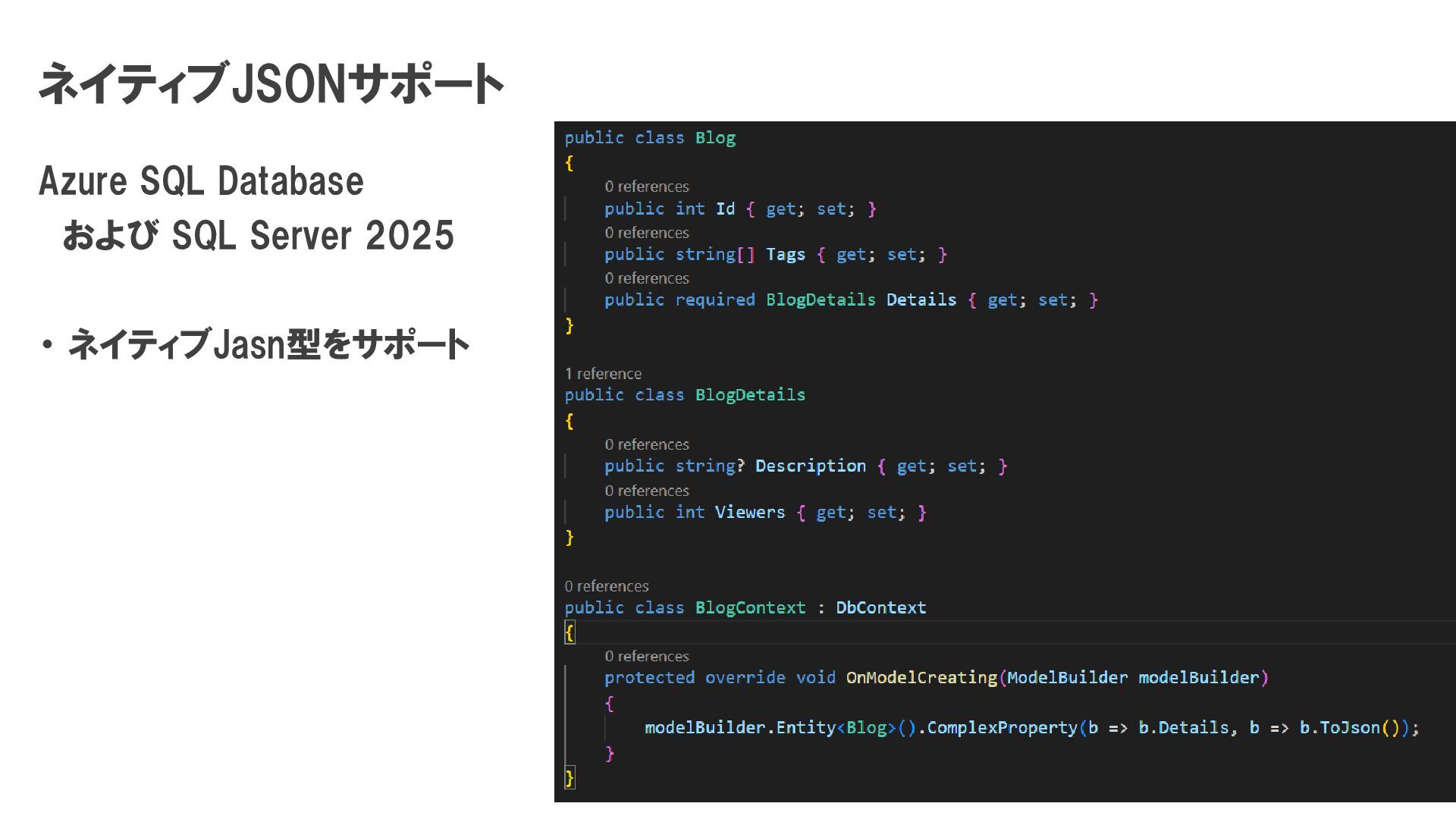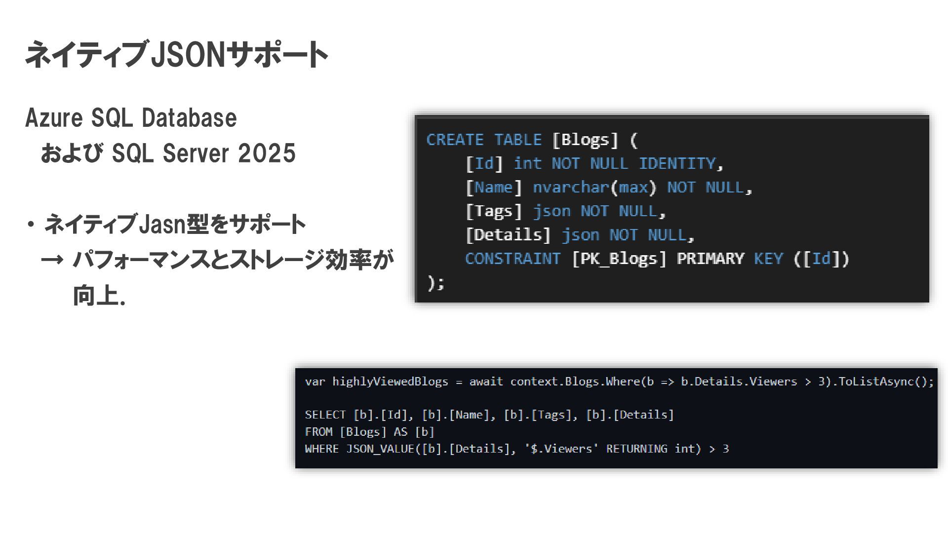 ネイティブJSONサポート Azure SQL Database および SQL Server 2025 ・ ネイティブJasn型をサポート