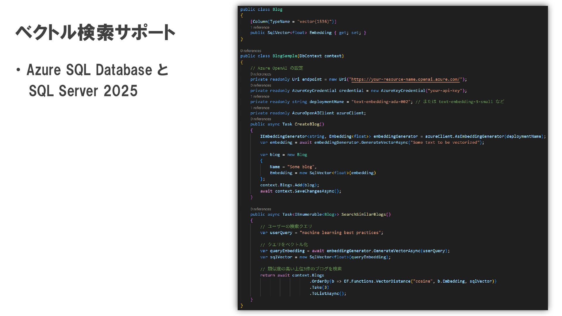 ベクトル検索サポート ・ Azure SQL Database と SQL Server 2025