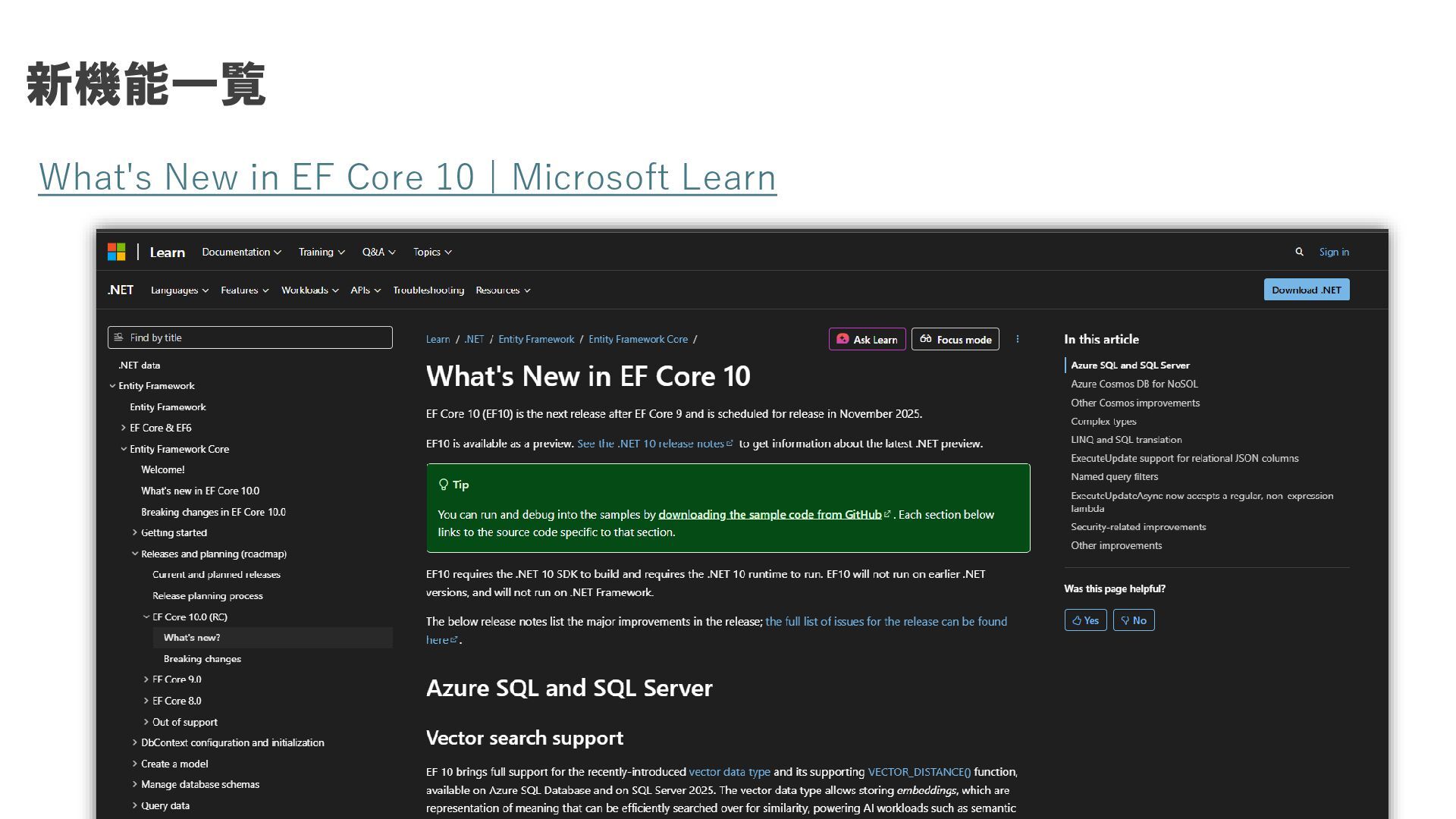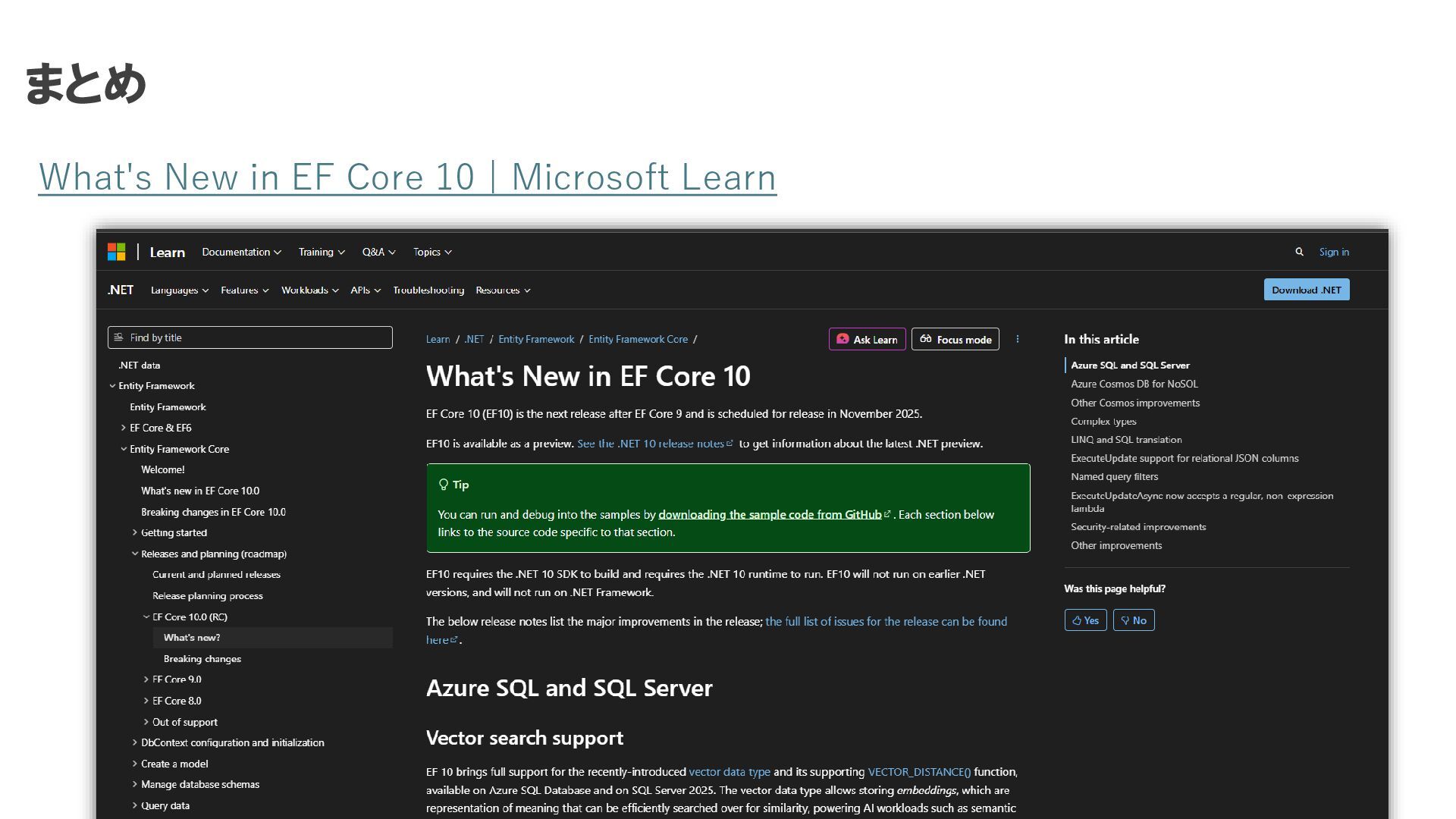まとめ What's New in EF Core 10 | Microsoft Learn
