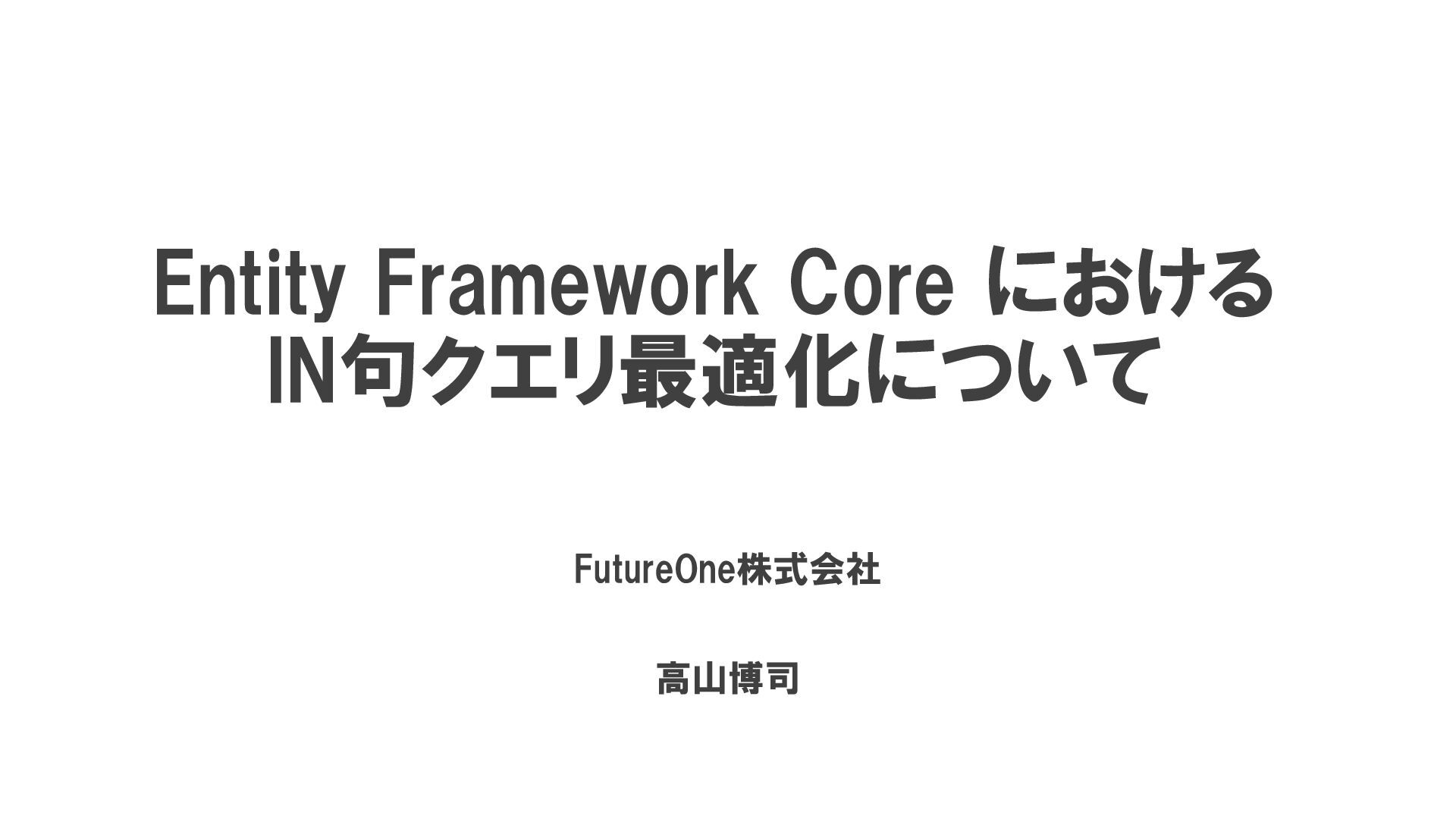 Entity Framework Core における IN句クエリ最適化について FutureOne株式会社 高山博司