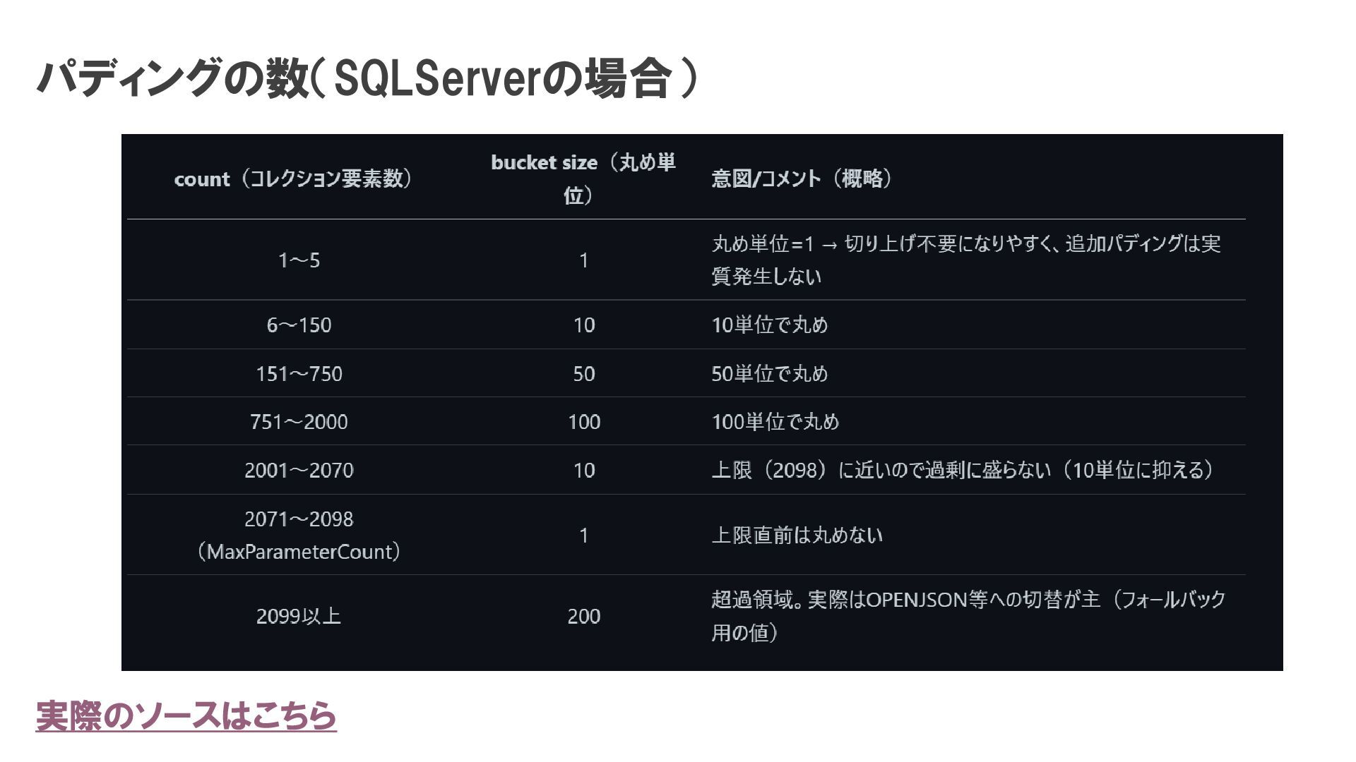 パディングの数(SQLServerの場合) 実際のソースはこちら