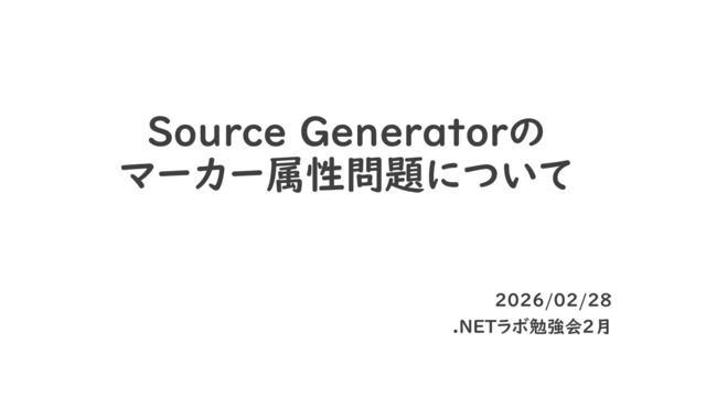 Source Generatorの マーカー属性問題について 2026/02/28 .NETラボ勉強会2月