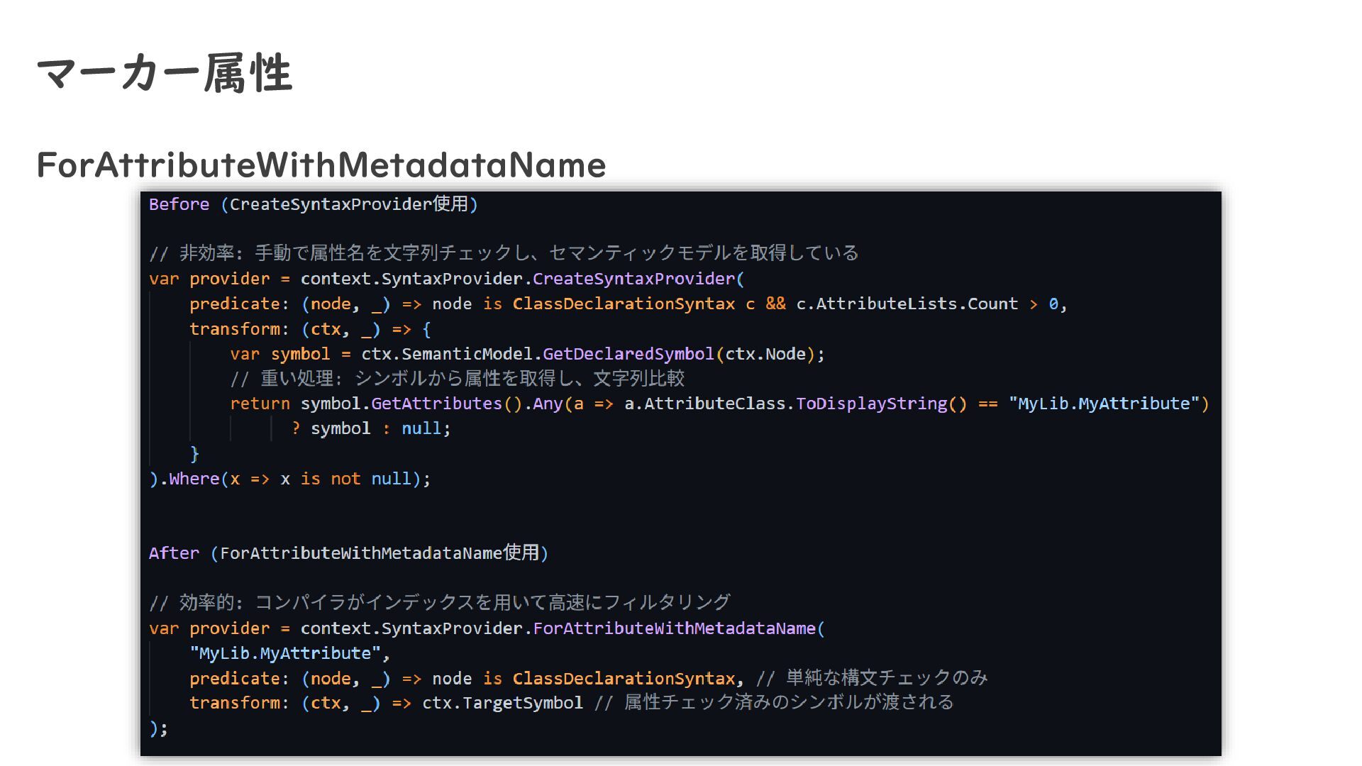 マーカー属性 ForAttributeWithMetadataName