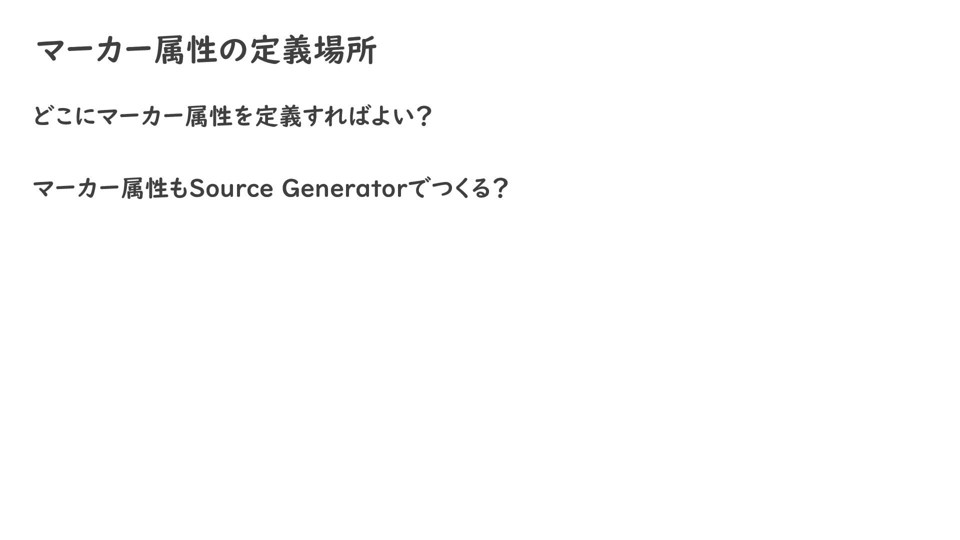 マーカー属性の定義場所 どこにマーカー属性を定義すればよい? マーカー属性もSource Generatorでつくる?