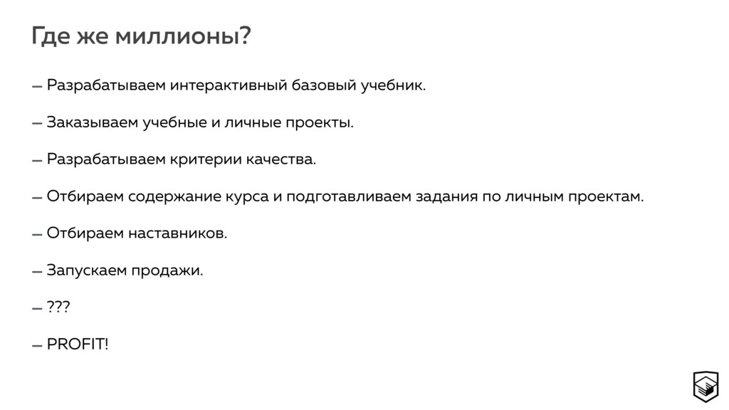 IT-образование обсуждается на конференциях, митапах и в подкастах. Какую методику и технологии использовать, чтобы создать эффективный прикладной курс? Как не бояться пиратов и почему с вузами всё нормально? И почему офлайн хуже онлайна? Всё на примерах из личного опыта.
