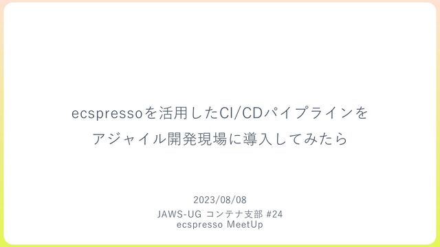 ecspressoを活用したCI/CDパイプラインを アジャイル開発現場に導入してみたら 2023/08/08 JAWS-UG コンテナ支部 #24 ecspresso MeetUp
