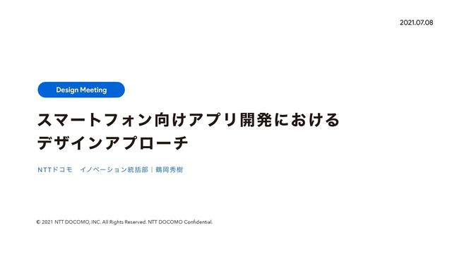 NTT DOCOMO Confidential. NTTυίϞɹΠϊϕʔγϣϯ౷ׅ෦ʛԬलथ 2021.07.08 Design Meeting